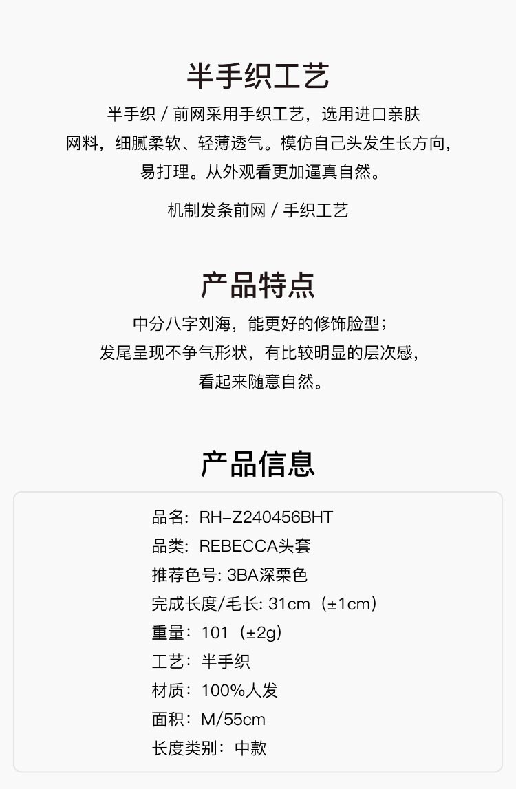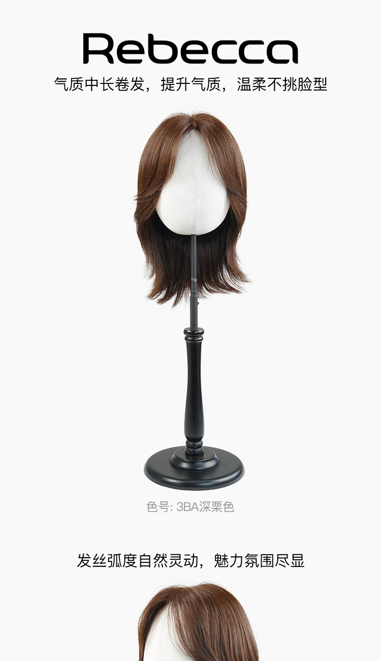 Rebecca瑞贝卡假发中分刘海卷发中长纹理卷发全手织优雅时尚头套