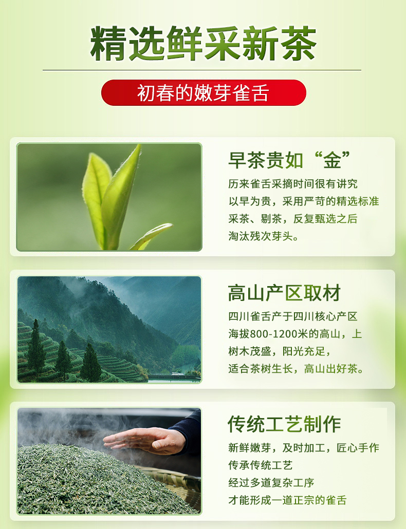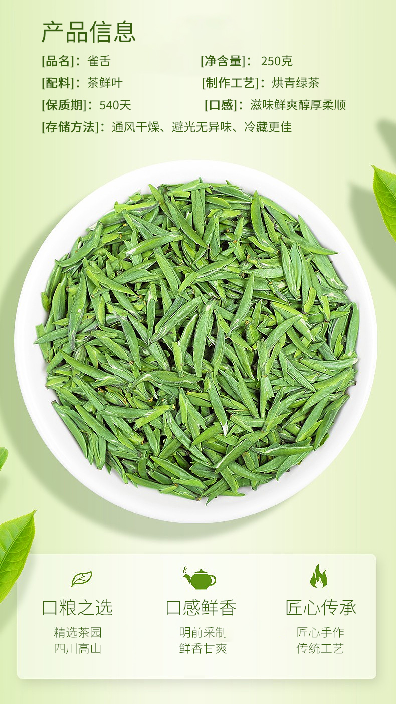 2026新茶上市 早春7星雀舌青叶甘露绿茶125g*2袋特尊茶
