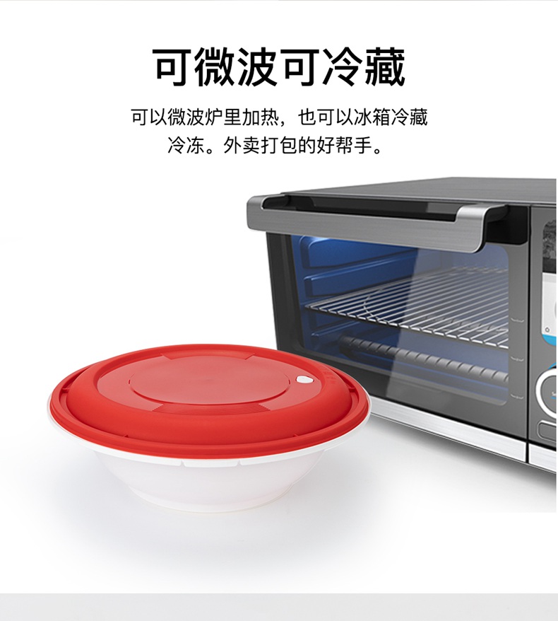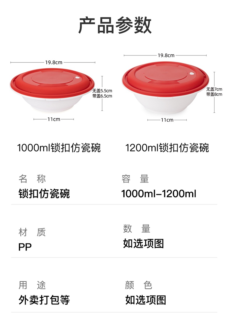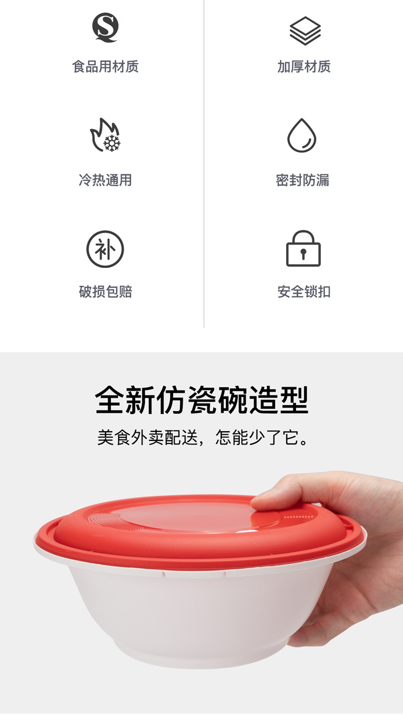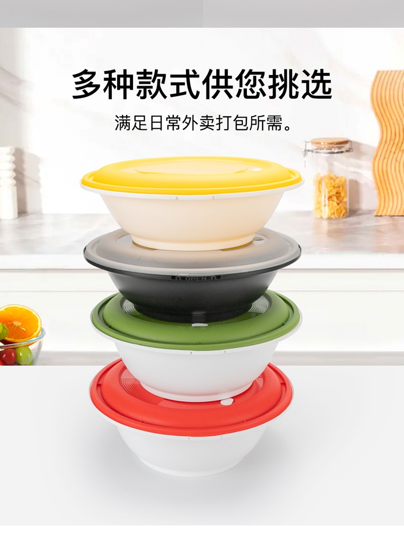 喇叭花一次性碗美式防盗锁扣打包盒圆形外卖便当盒加厚仿瓷碗面碗