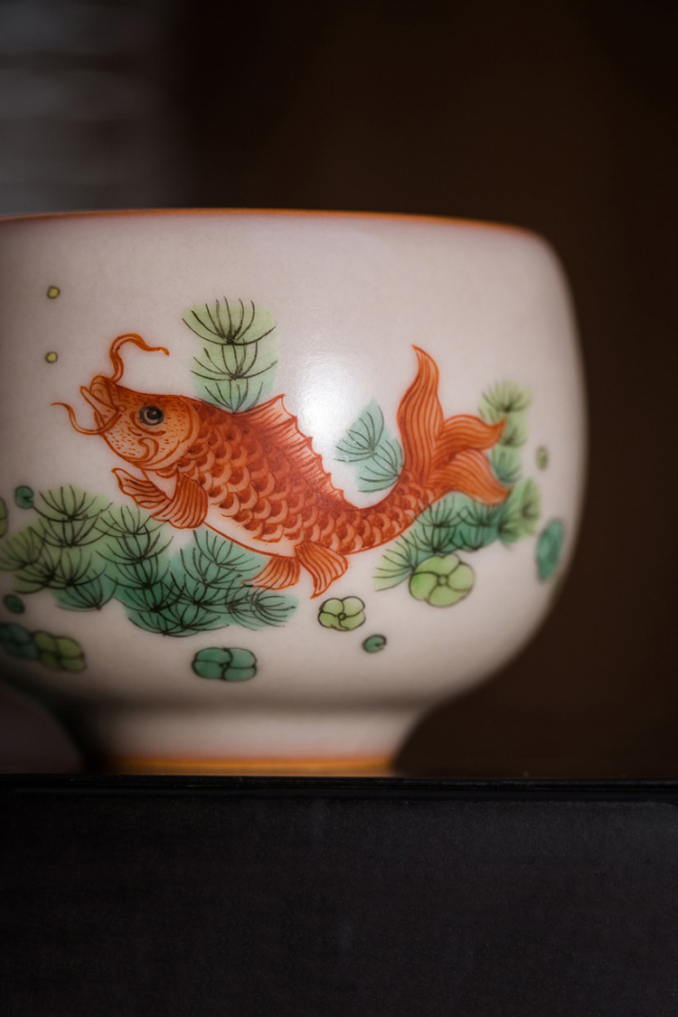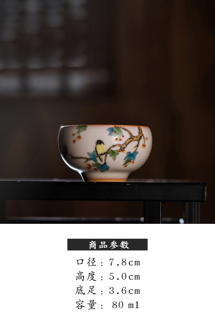 问鼎松涛彩绘哥窑晴雪杯(菊蕊飘香)江涵杯(鸟啼新果)映空杯(倩桃为寿)晴雪杯(梅竹鸟栖)晴雪杯(年年有余)朔风杯(多子石榴)(缺货)