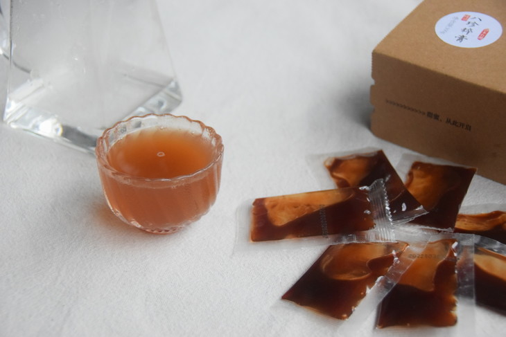 略带稀果冻般的弹感,可以直接嚼食,也可开水冲调,酸甜可口开胃,作为自饮或待客的品饮都能收获满满的赞美。