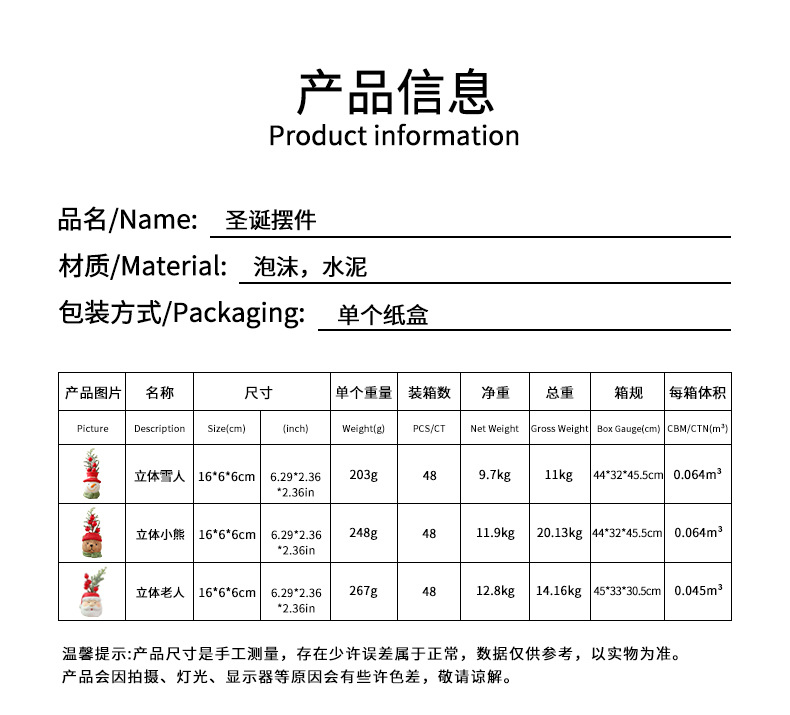 【颜值爆表❗️圣诞节侏儒娃娃】圣诞老人&雪人水泥摆件,耐用性强,质地细腻,触感舒适,装点你的节日氛围,圣诞老人雪人水泥圣诞装饰品摆件QQ