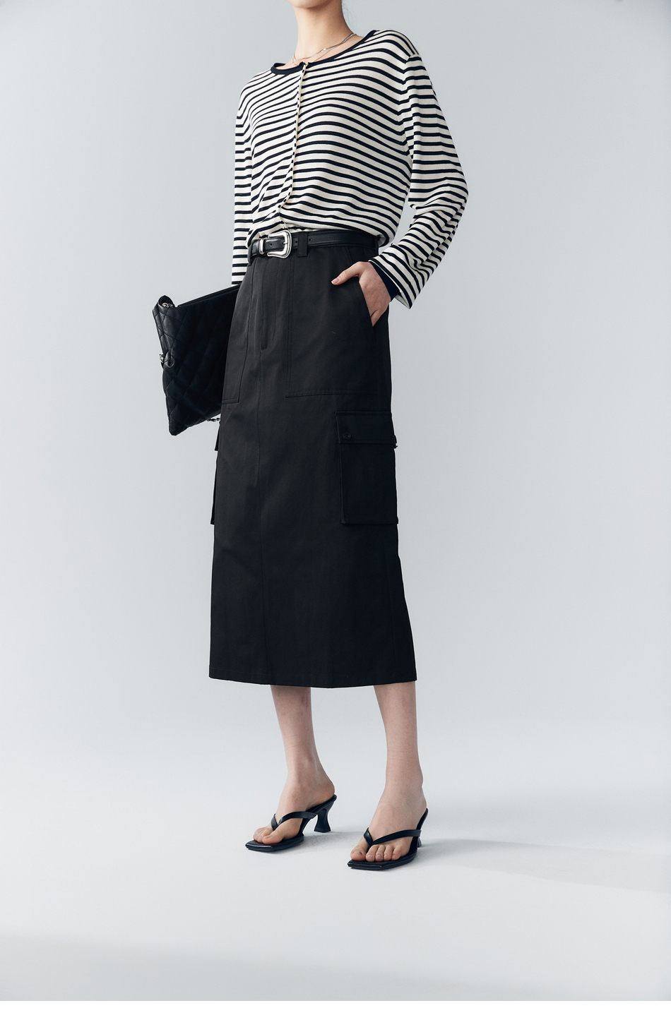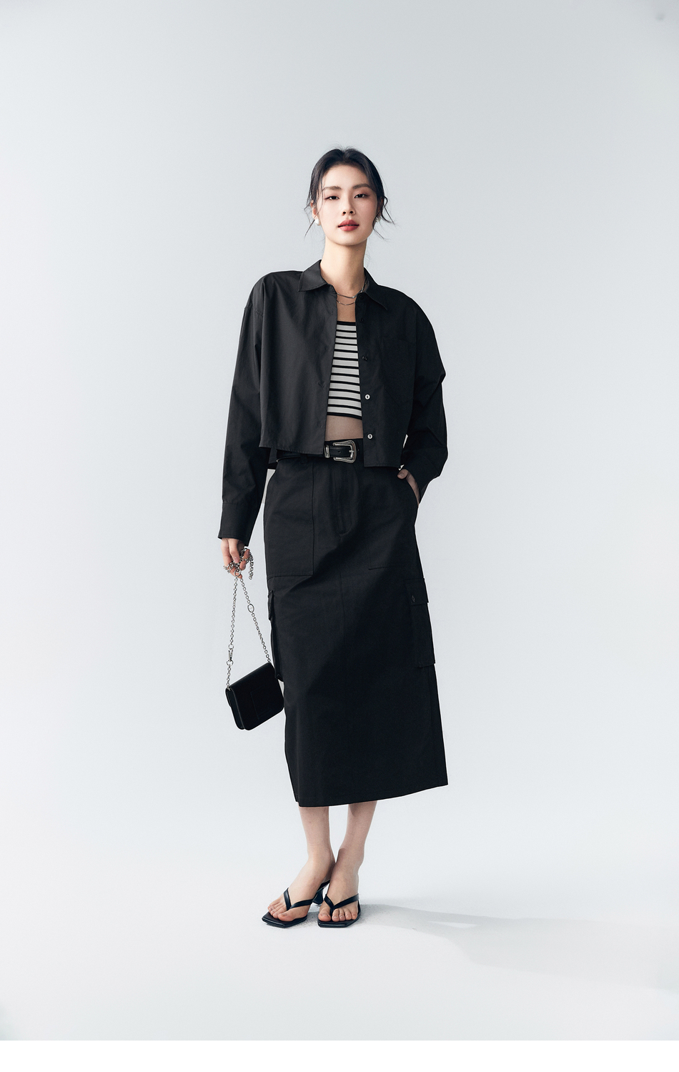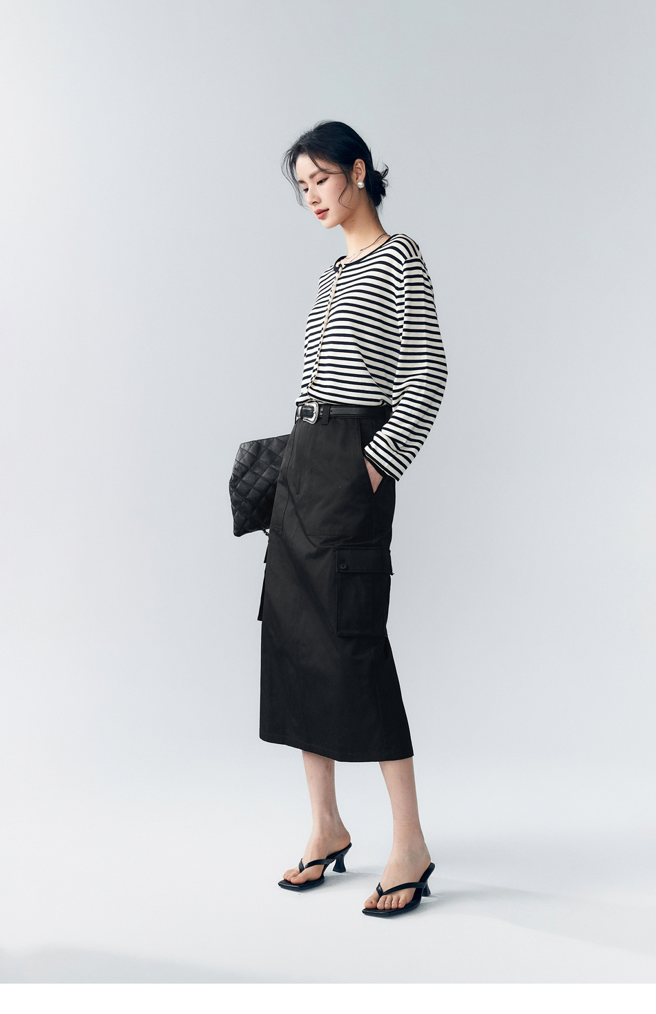棉仓366601027-25春夏圆领长袖窄肩设计简约时髦感T恤