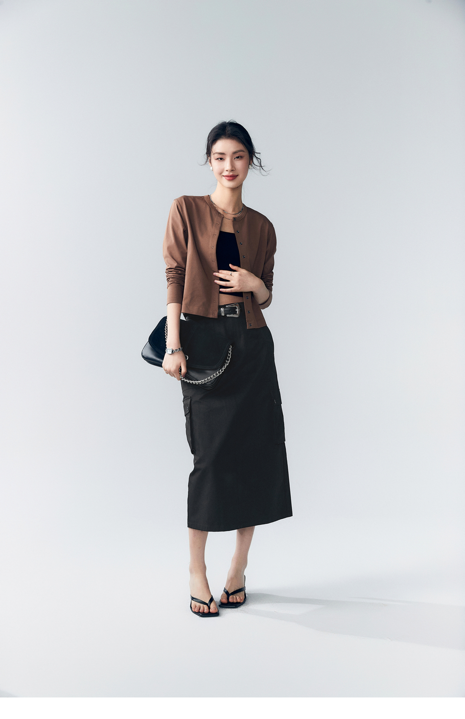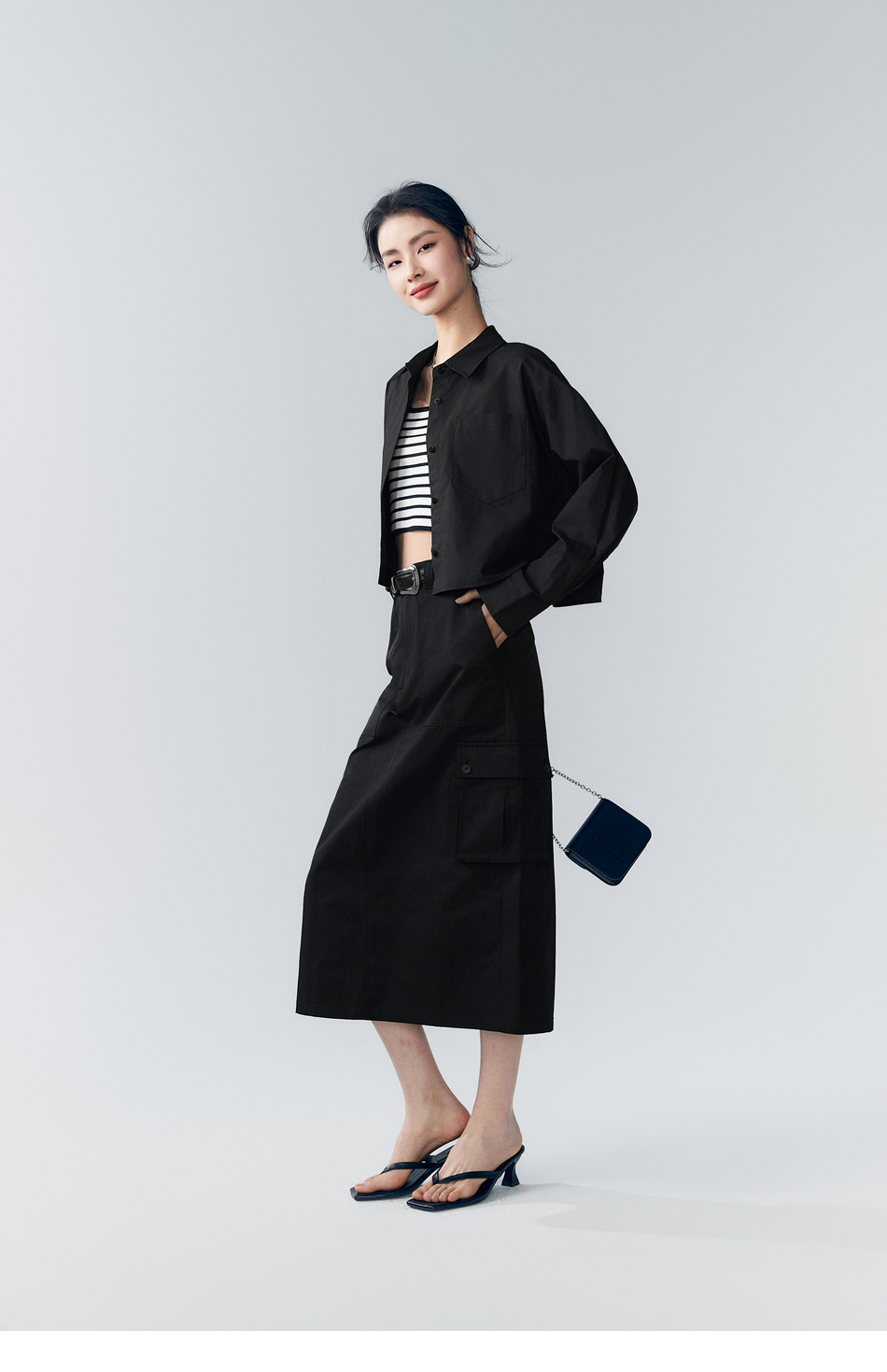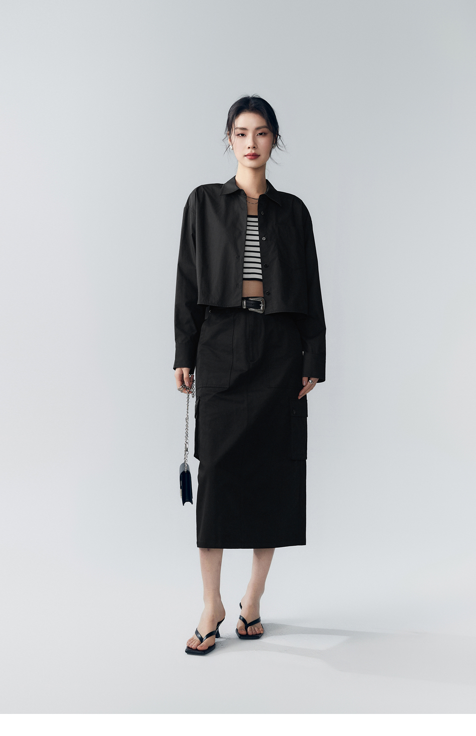 棉仓366601027-25春夏圆领长袖窄肩设计简约时髦感T恤