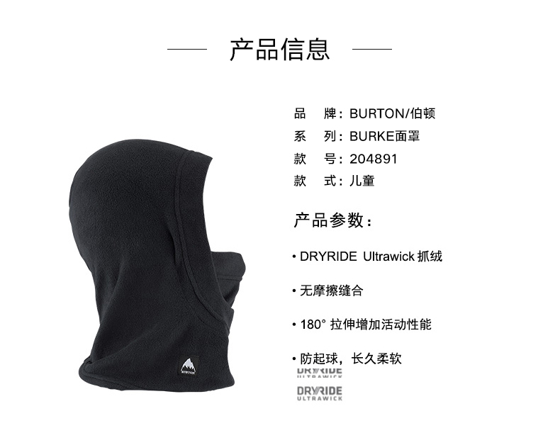 【断码六折】BURTON/伯顿儿童滑雪护脸面罩围脖头套保暖防风柔软单板滑雪护具 213391