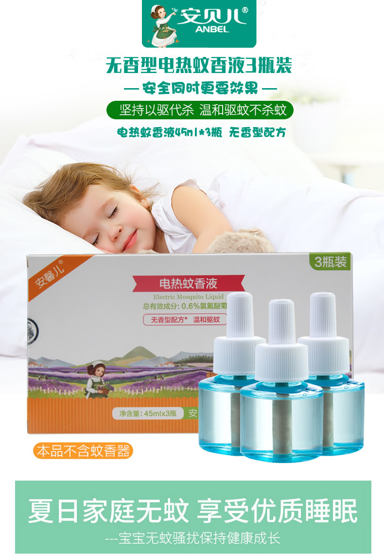 安贝儿叮叮电热蚊香液 45ml*3瓶(AY13036)(新旧包装随机)