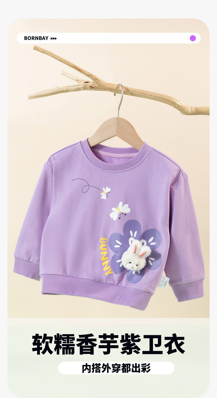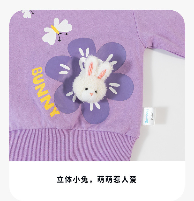 贝贝怡童装女童香芋紫套头卫衣春秋新款儿童上衣小兔上装宝宝衣服233S3259