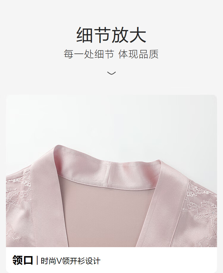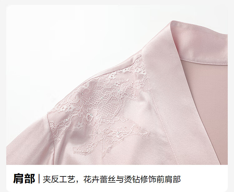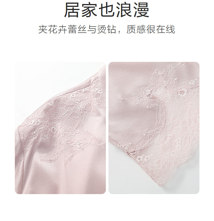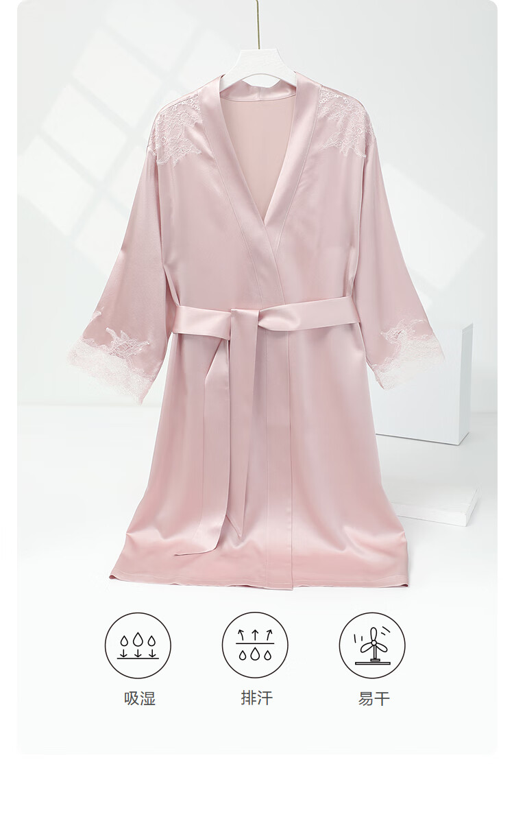 【3F】安莉芳轻奢桑蚕丝女士蕾丝纯色家居睡袍EL00855
