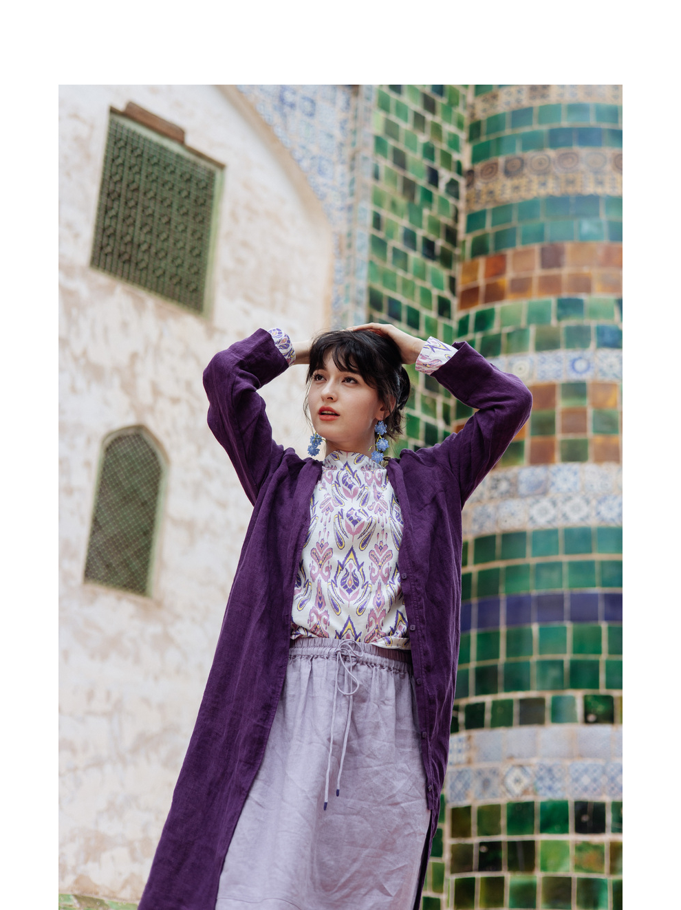 以天然亚麻为载体,融合热烈色彩与自在剪裁为身在城市、心怀远方的女性提供兼具美学与舒适的旅行着装