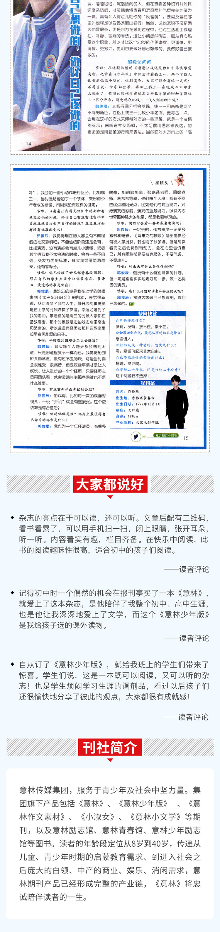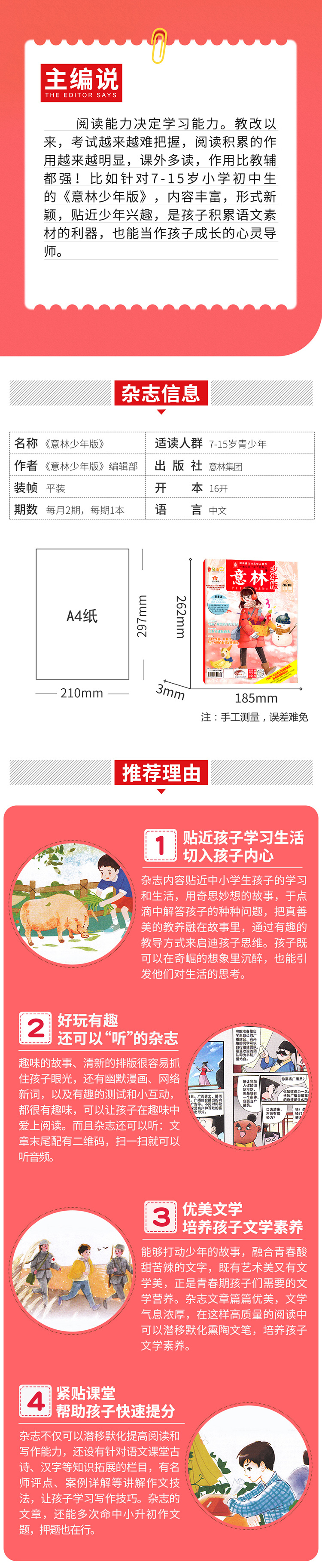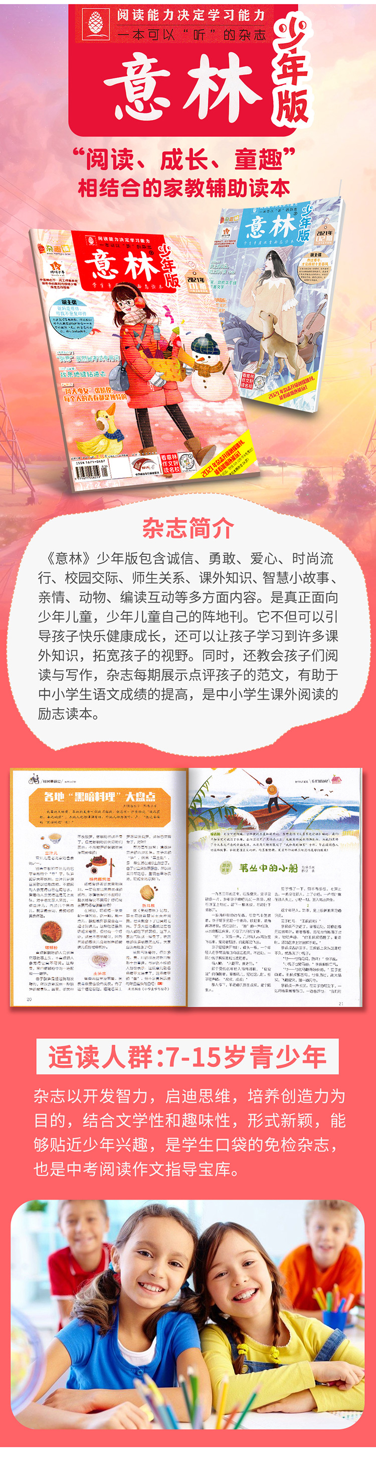 意林少年版杂志2026全年/跨年订阅共24期 赠 随机1本错题本或笔记本 语文成绩提高,中考阅读作文指导宝库