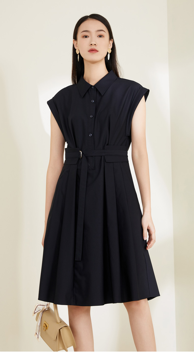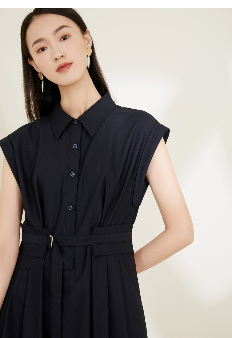 玳莎无袖衬衫裙2022新款夏季通勤工装风收腰显瘦小众设计感连衣裙 CB35001