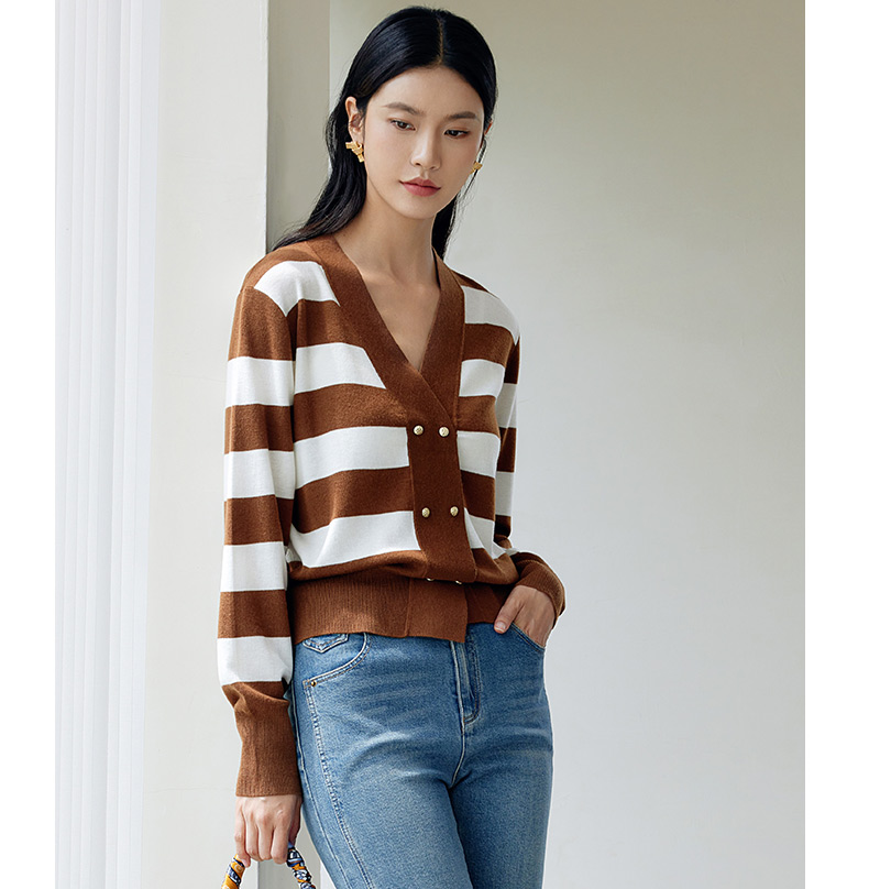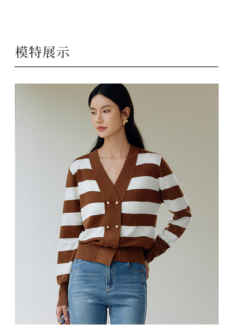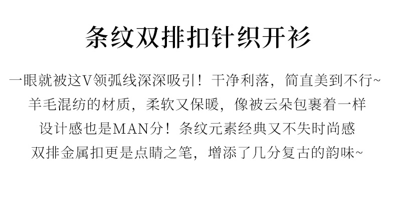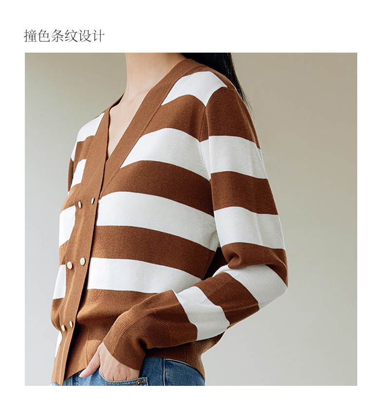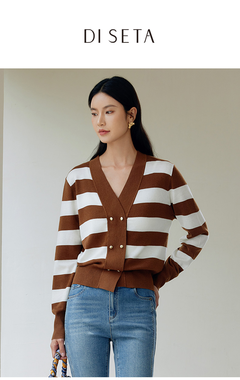 玳莎条纹双排扣针织开衫24年秋季新款经典时尚百搭长袖毛衣外搭女 EC33303