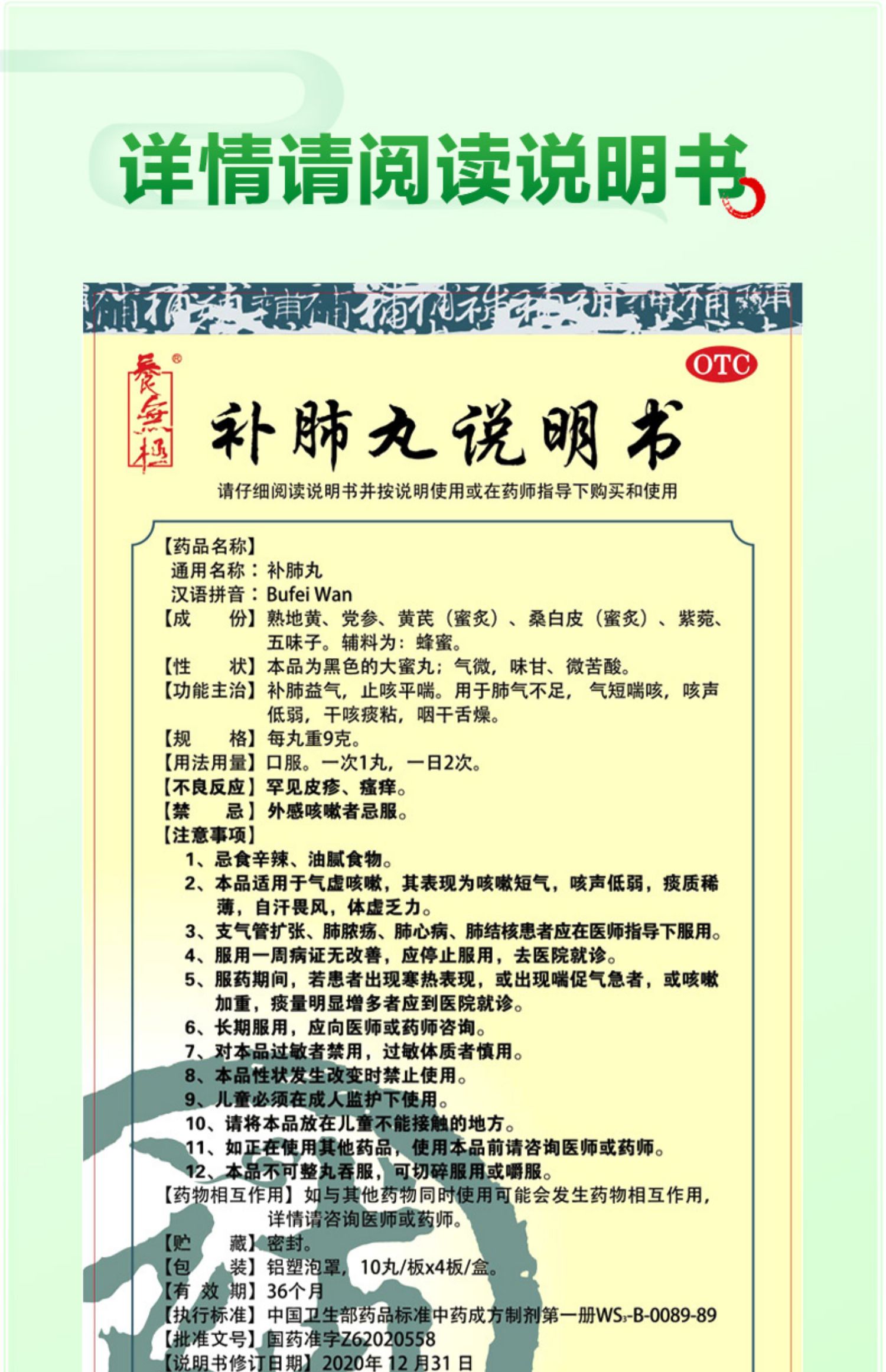 补肺丸 养无极40丸补肺益气 止咳平喘 哮喘支气管炎 咳嗽干咳正品