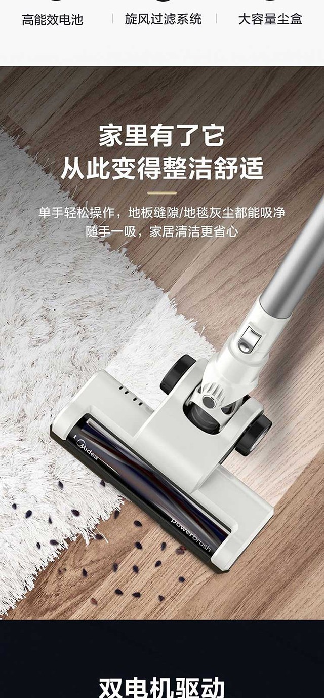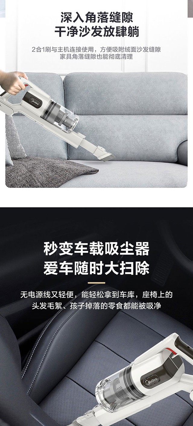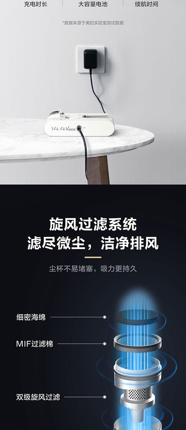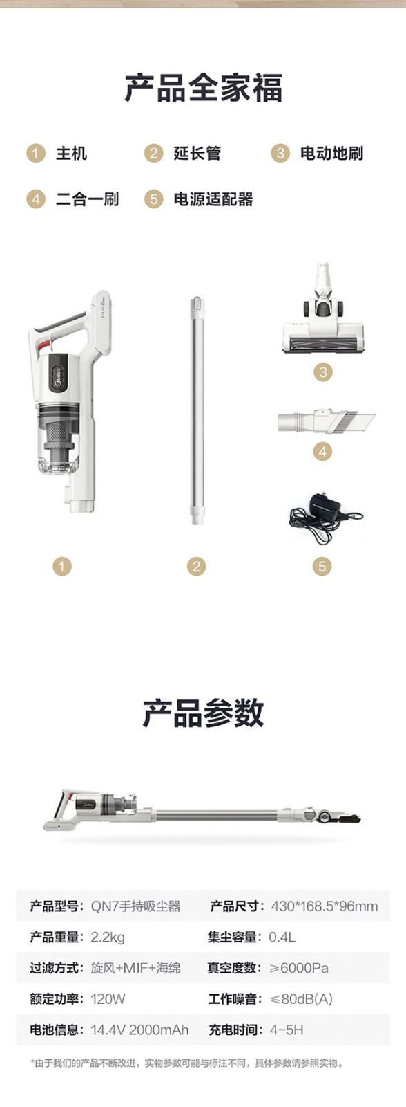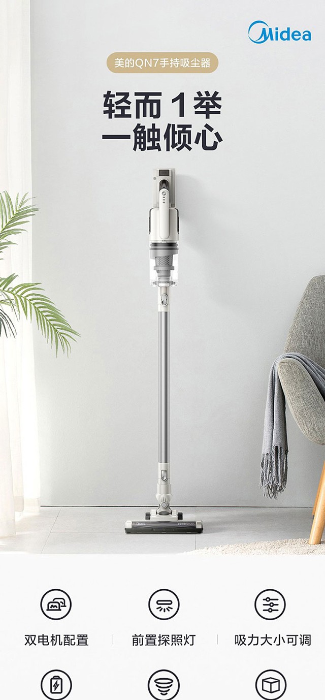 美的(Midea) 手持式 家用 无线吸尘器 QN7 强劲吸力 旋风过滤 一键倒尘