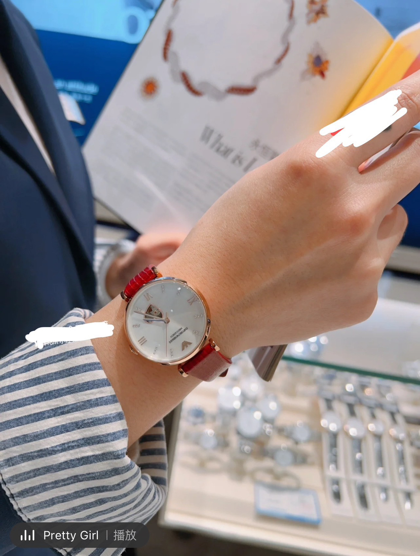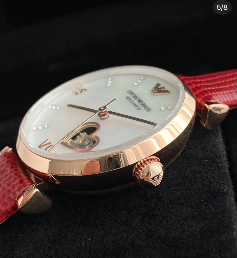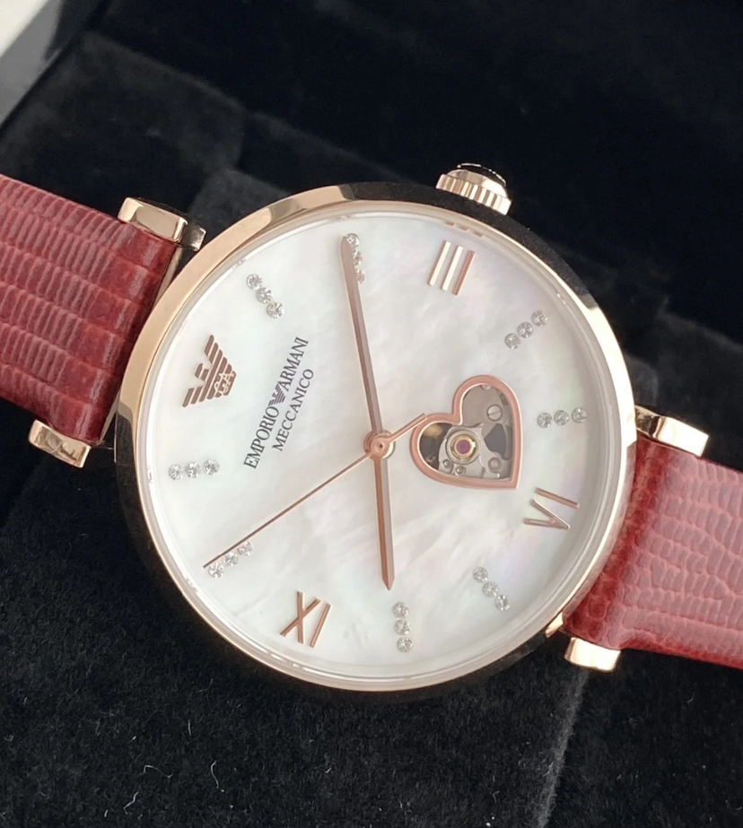 🇺🇸¥1520直邮!阿玛尼AR60048镂空透视自动机械表,心型镂空透视窗,质感指针、利落线条大气跃然于手!贝母白色表盘搭配进口牛皮带大气又美观!生活防水30米,保证正品!
