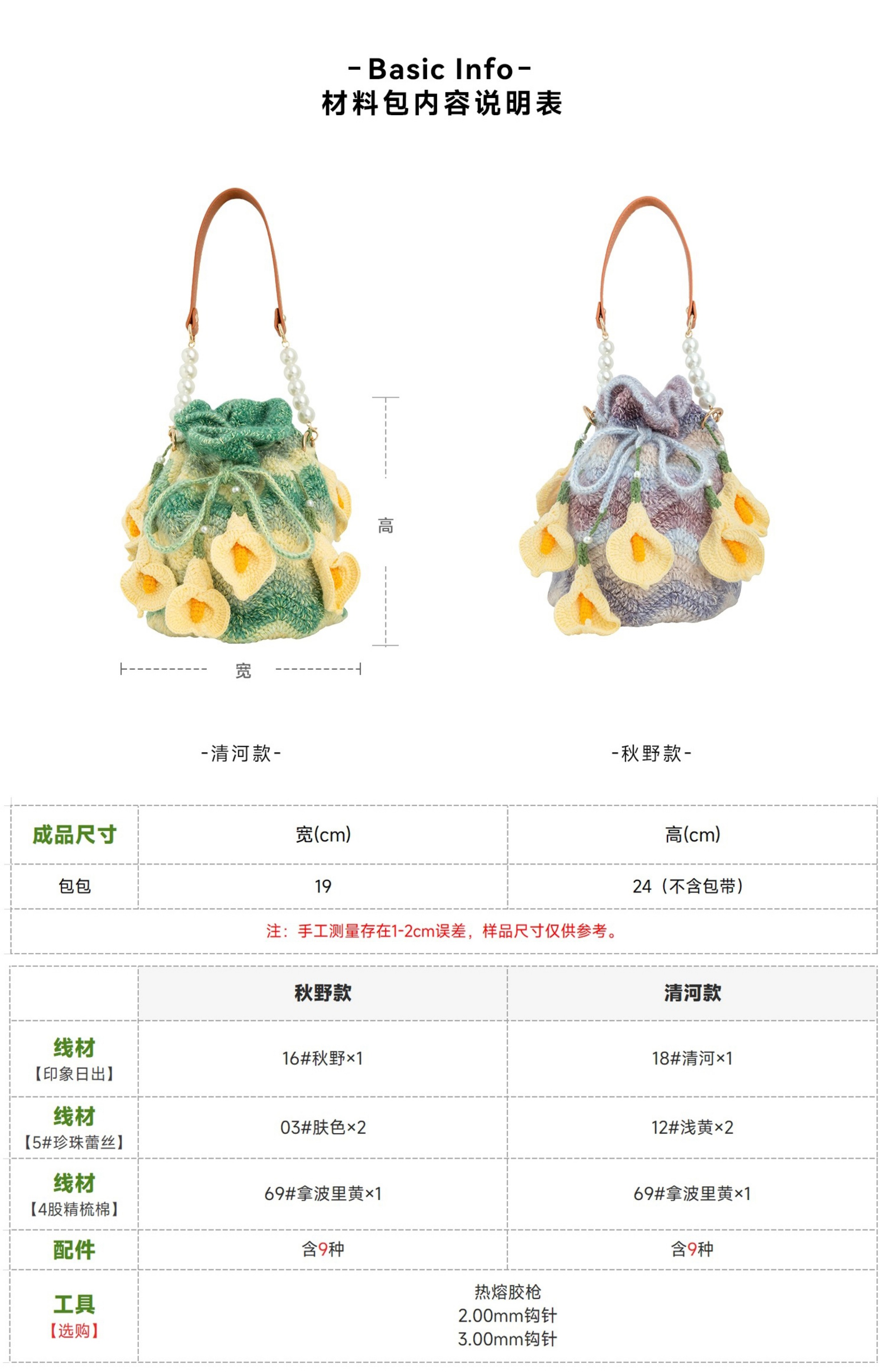 苏苏姐家马蹄莲水桶包手工DIY编织钩针包包毛线自制材料包