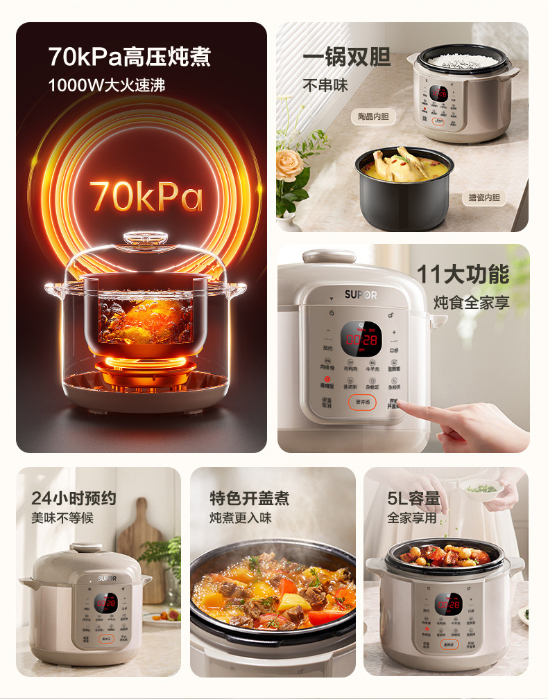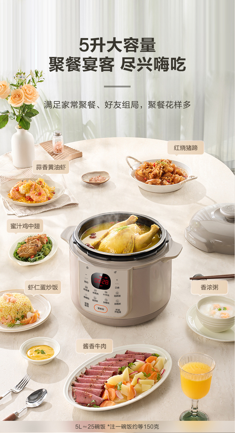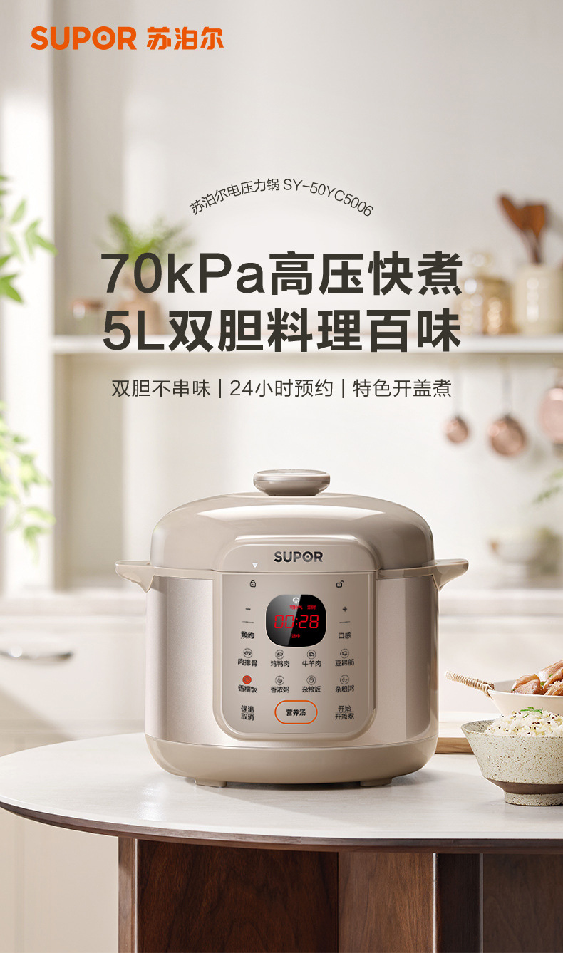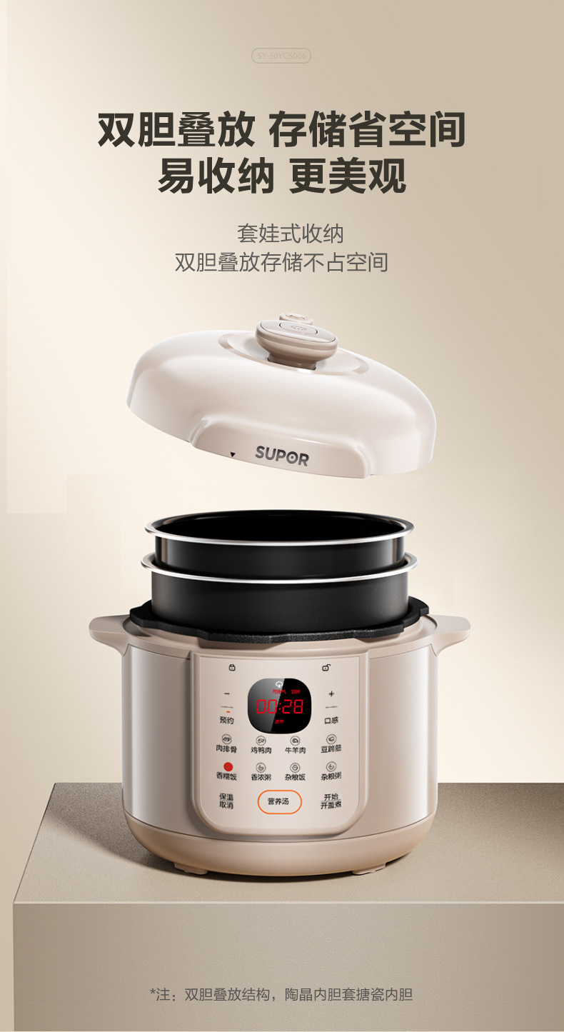 SUPOR/苏泊尔 双胆5升电高压锅多功能智能预约高压锅SY-50YC5006