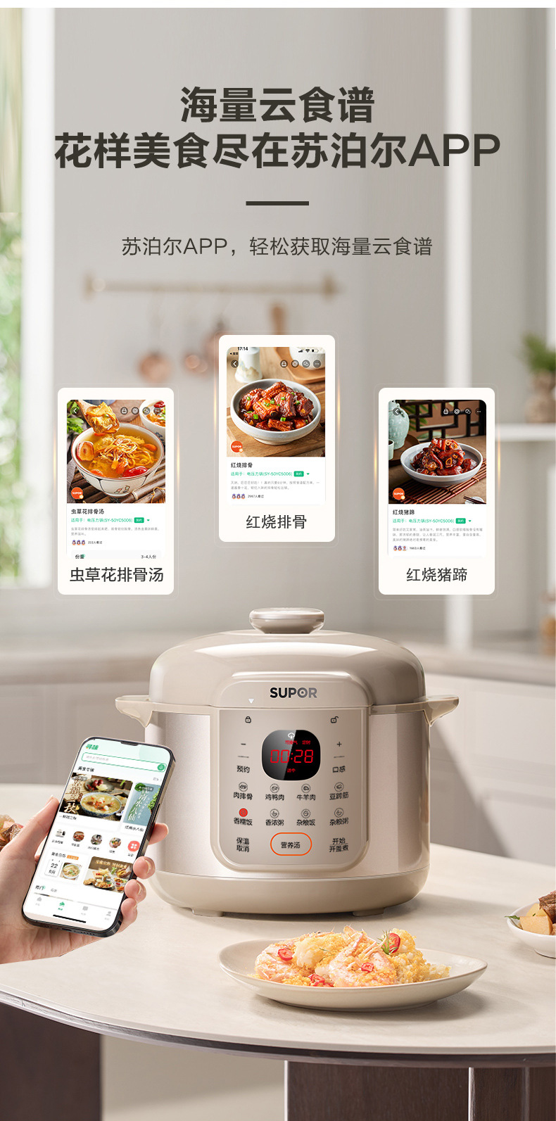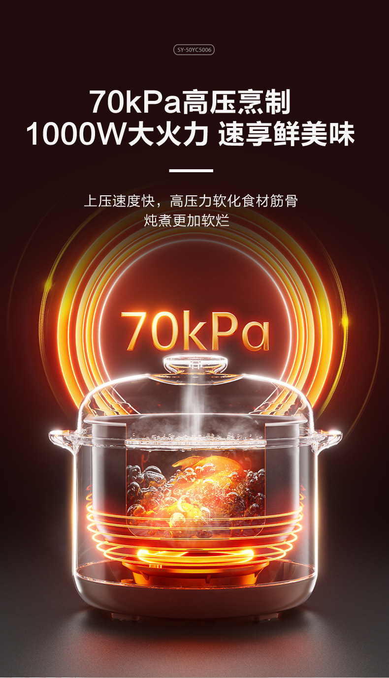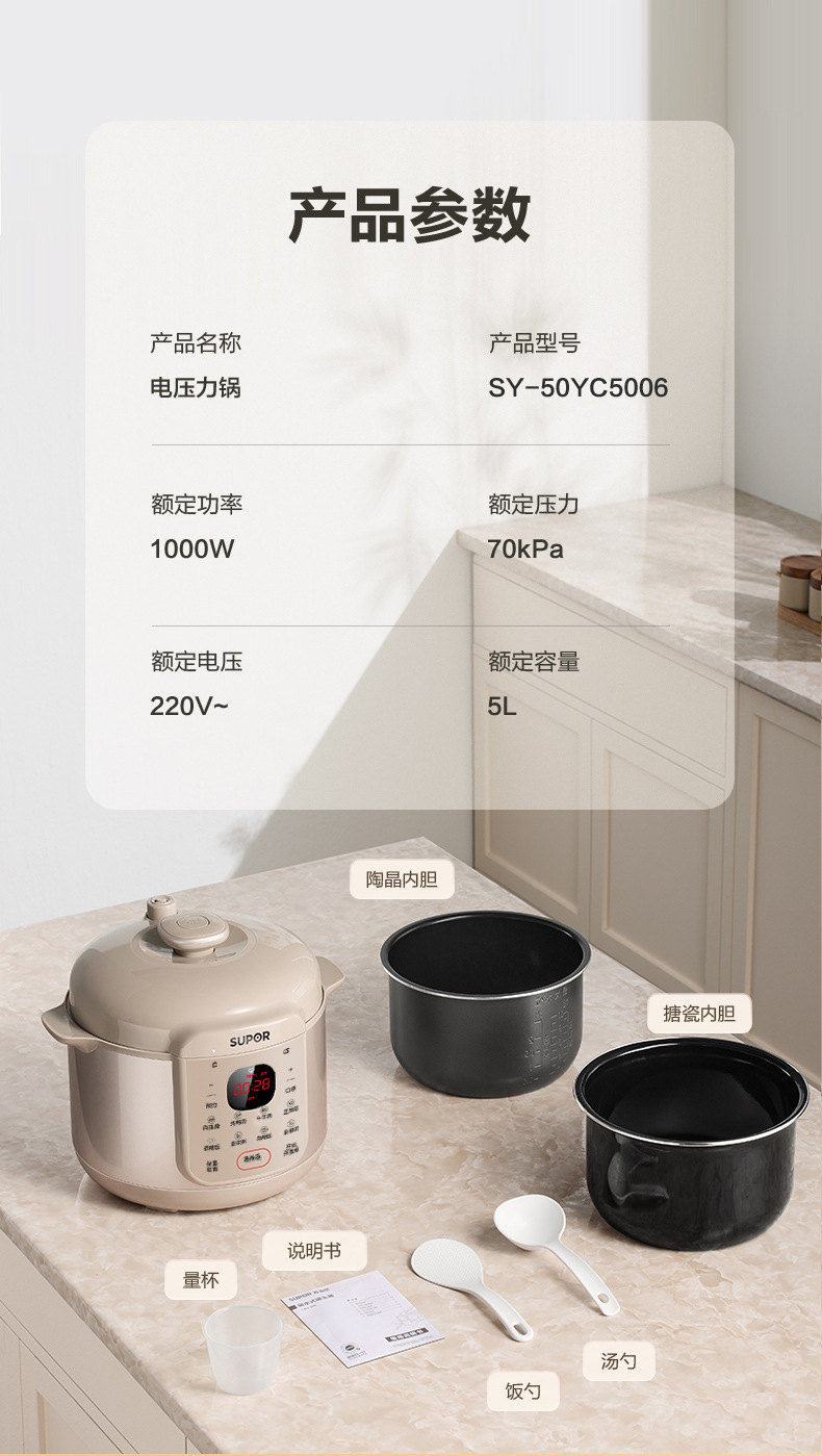 SUPOR/苏泊尔 双胆5升电高压锅多功能智能预约高压锅SY-50YC5006