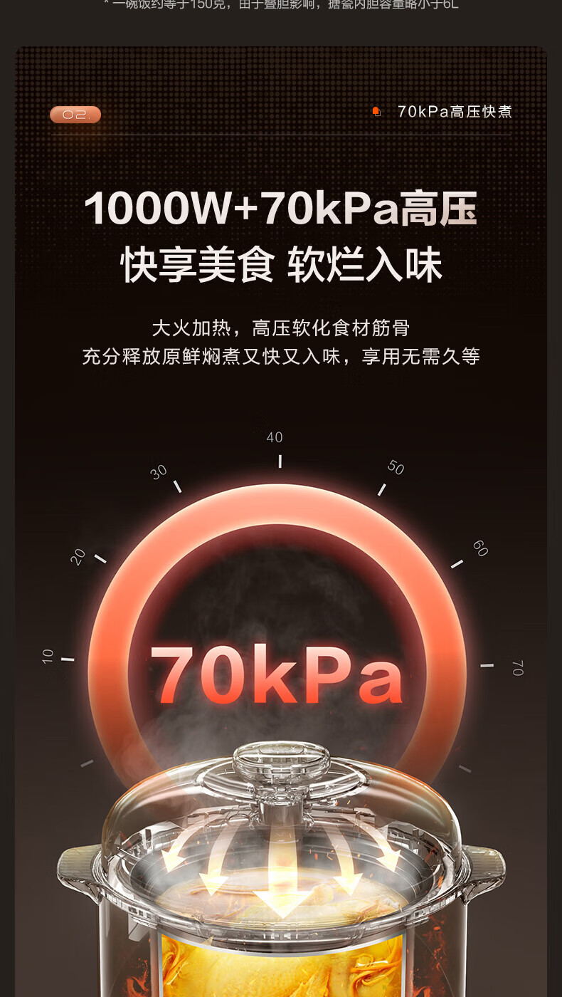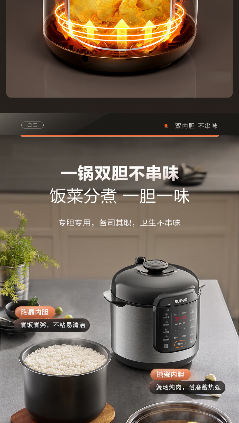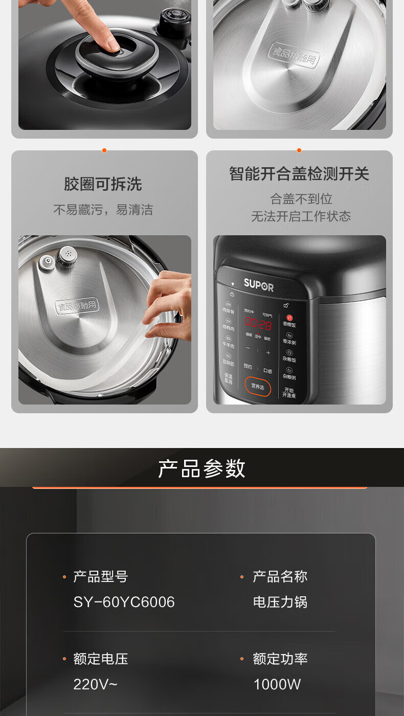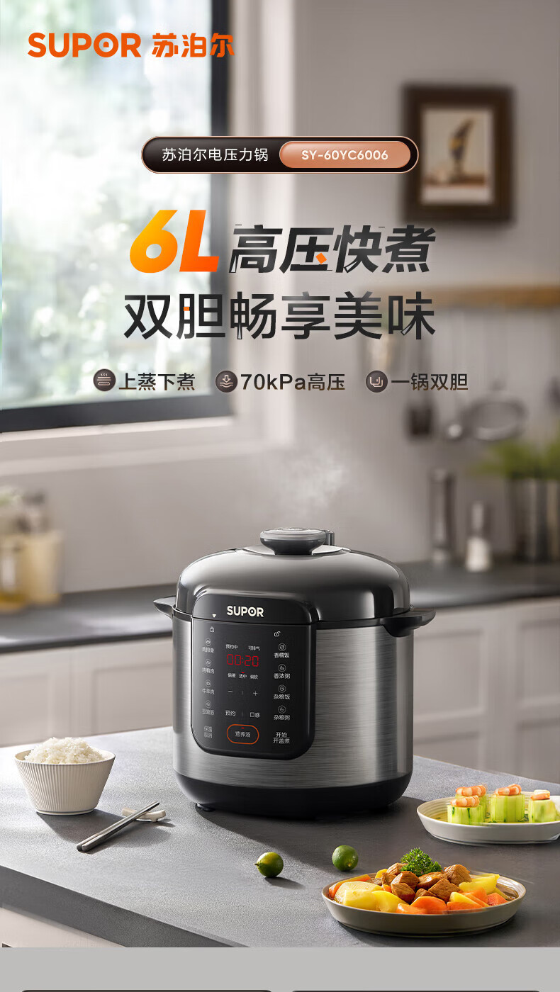 SUPOR/苏泊尔 电压力锅6L双胆蒸笼蒸煮预约煲汤煮饭SY-60YC6006