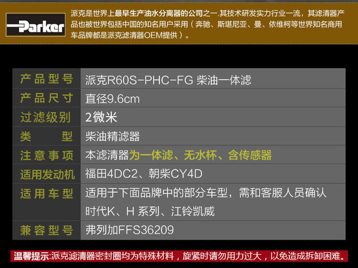 派克R60S-PHC-FG 2微米一体滤 福康ISF2.8升柴油电控共轨发动机适用
