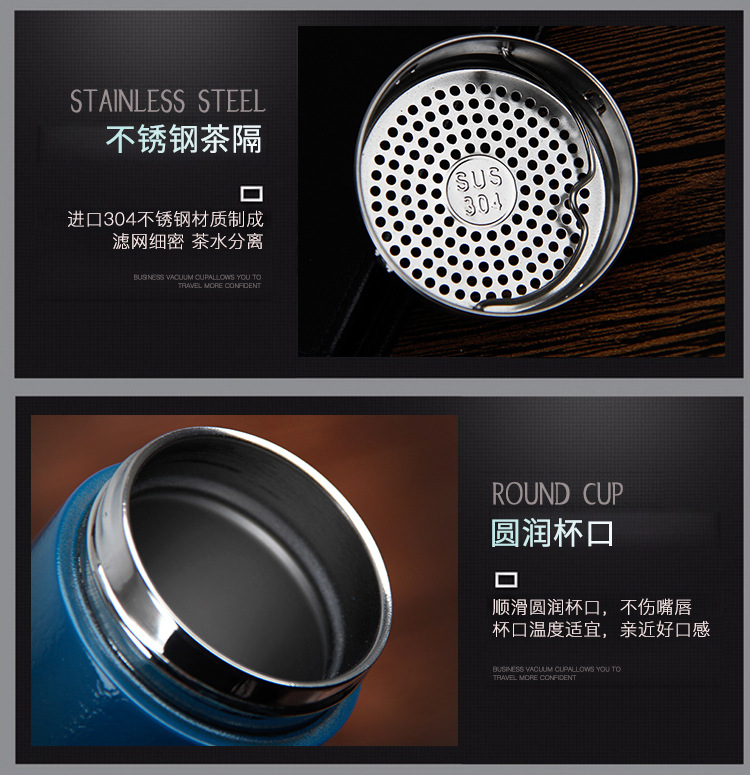 【保温杯】贝思星304不锈钢商务皮纹保温杯礼品真空杯男士水杯