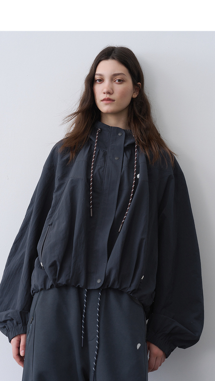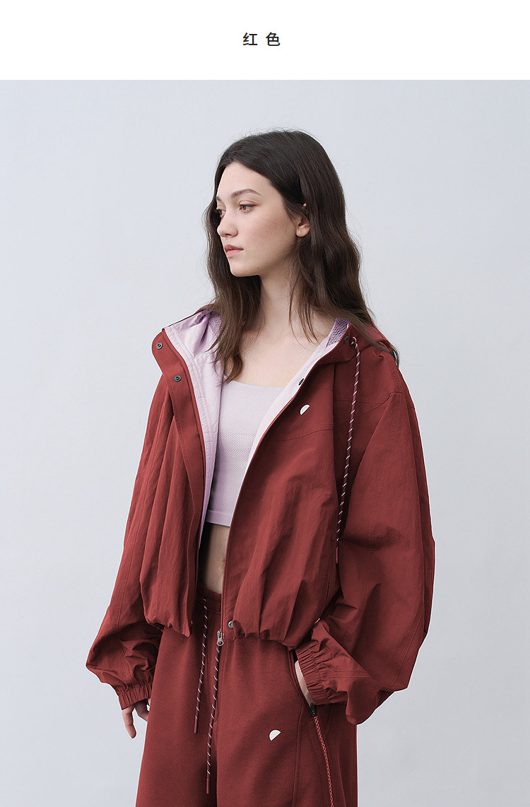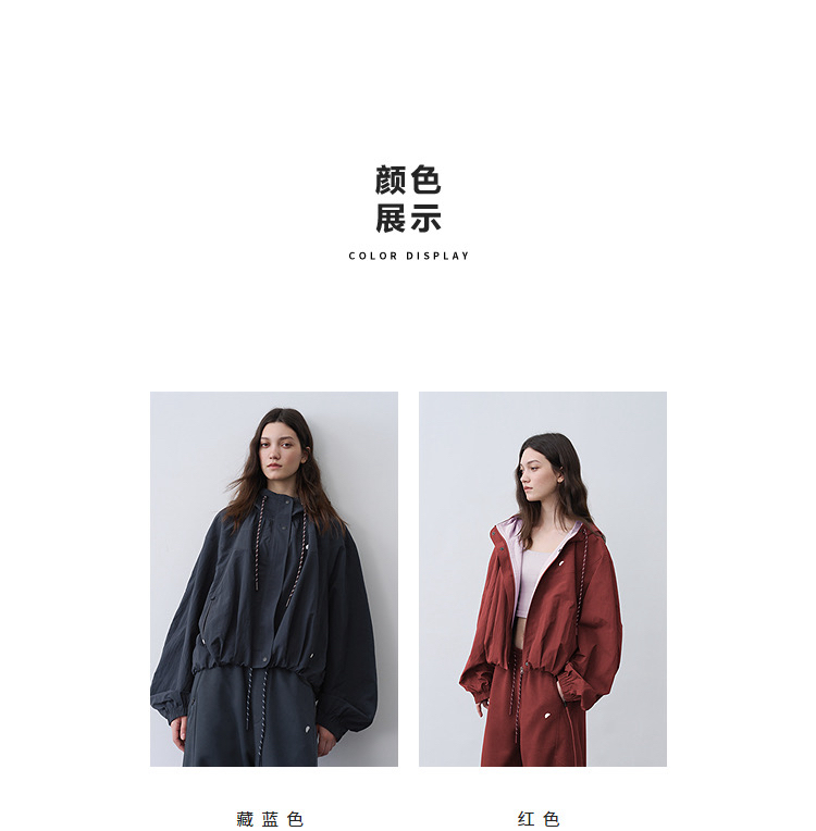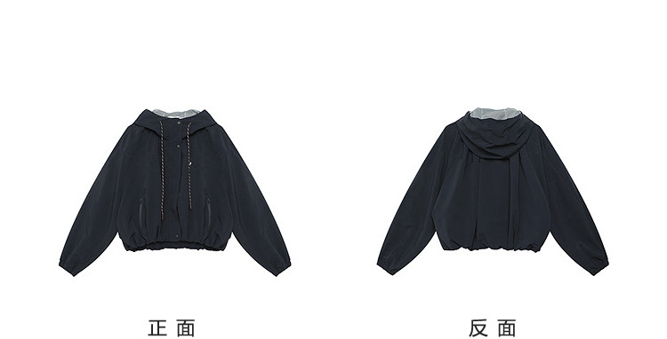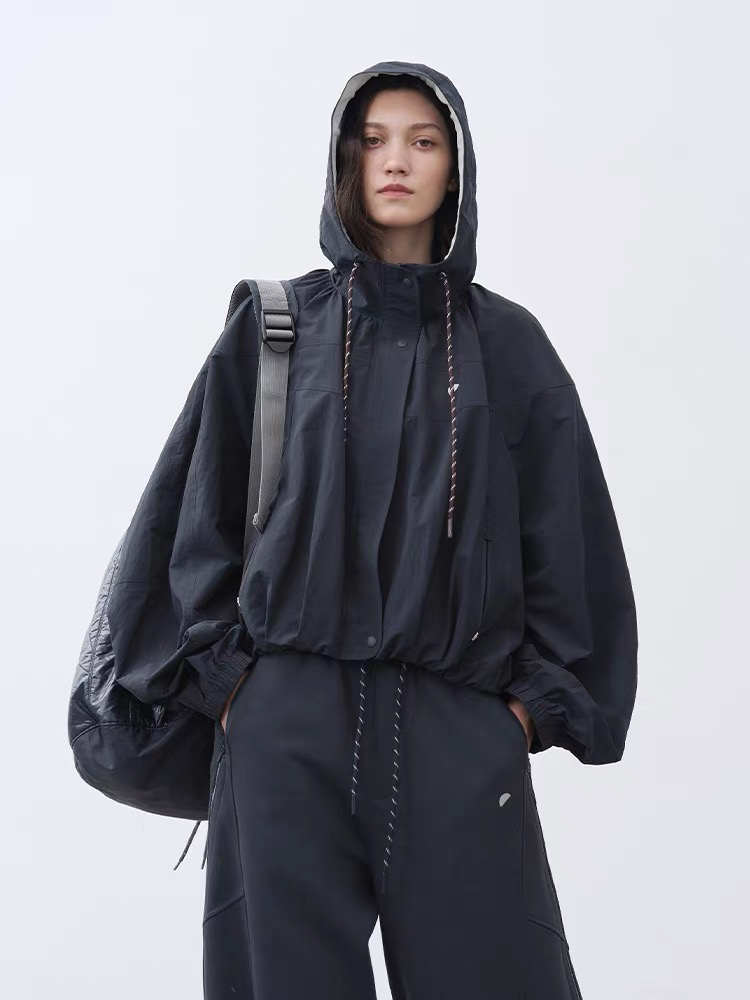 半圆原创 女装 春季 新款 短箱版型 连帽抽绳松弛廓形结构感外套