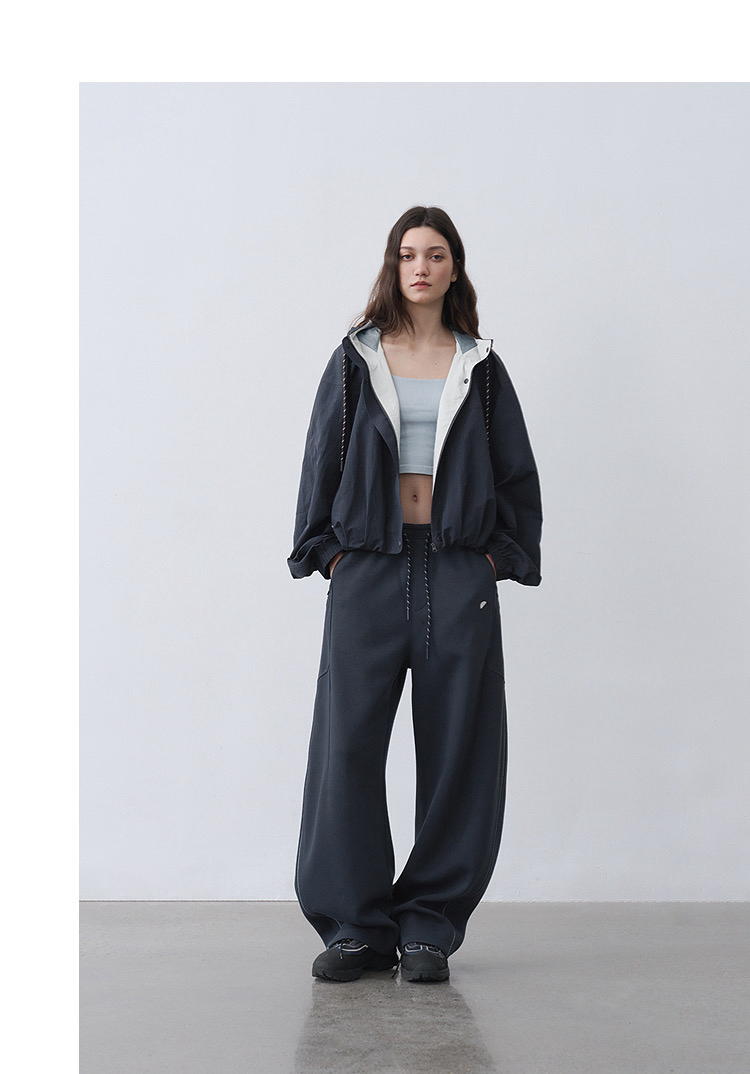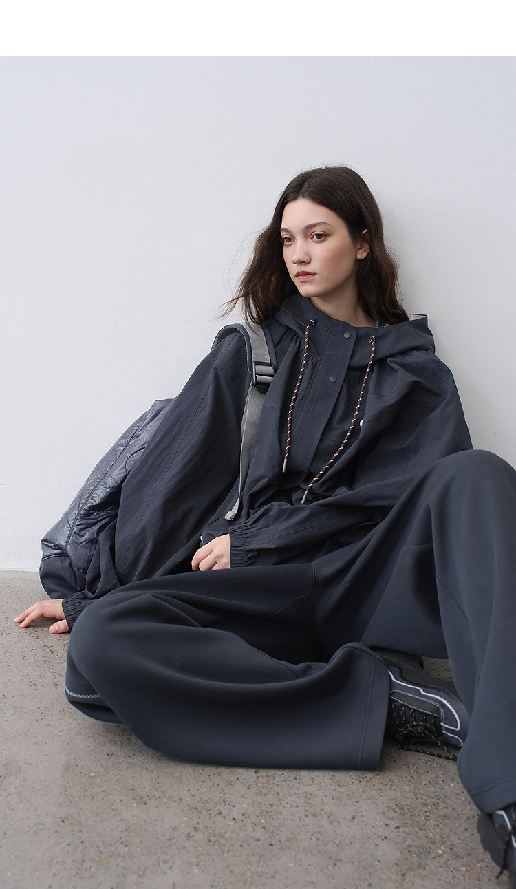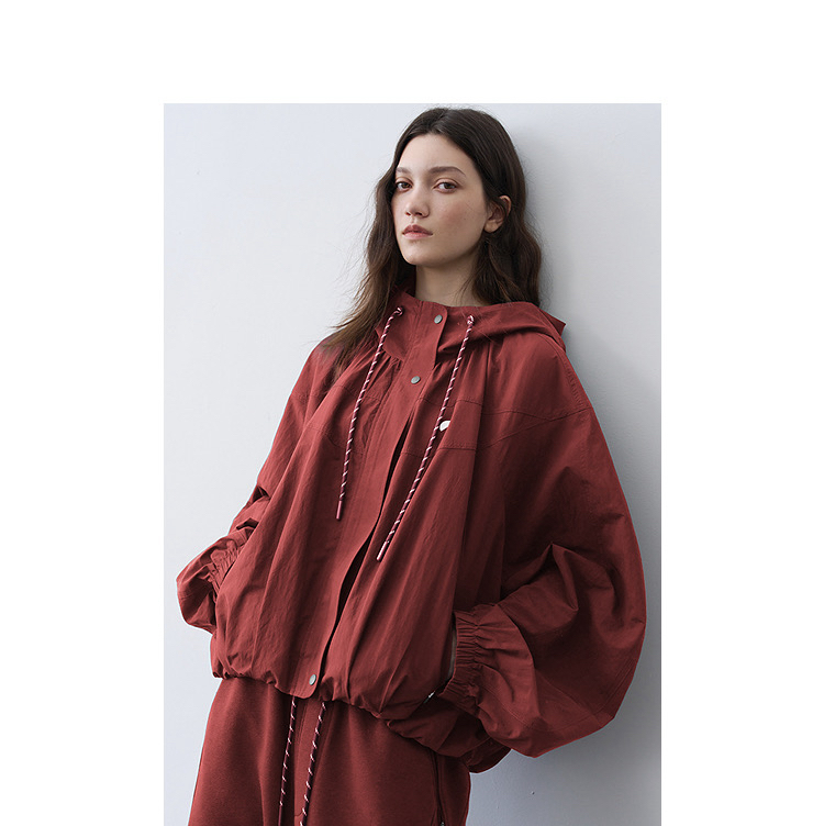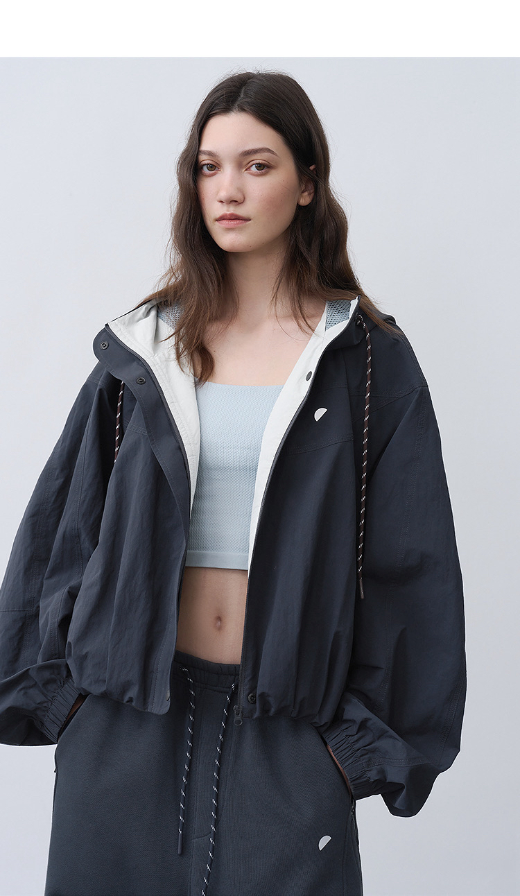 半圆原创 女装 春季 新款 短箱版型 连帽抽绳松弛廓形结构感外套