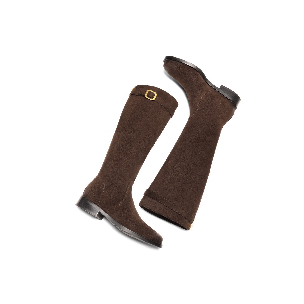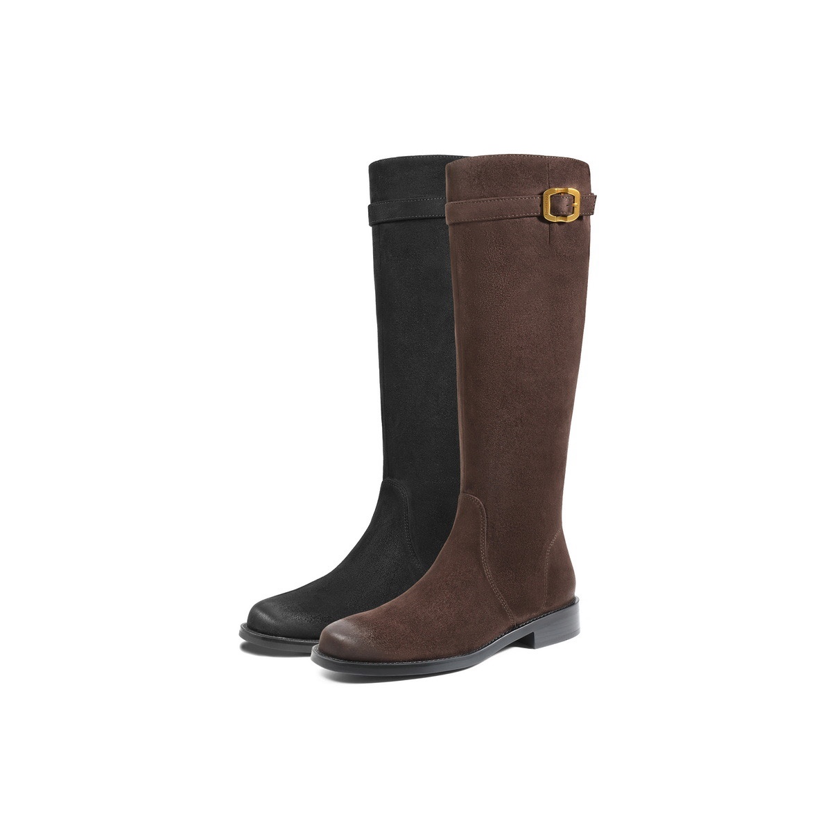 BF楼百丽显瘦瘦靴绒面弹力骑士靴子女2025冬新款粗跟高长靴3QFF2DG5