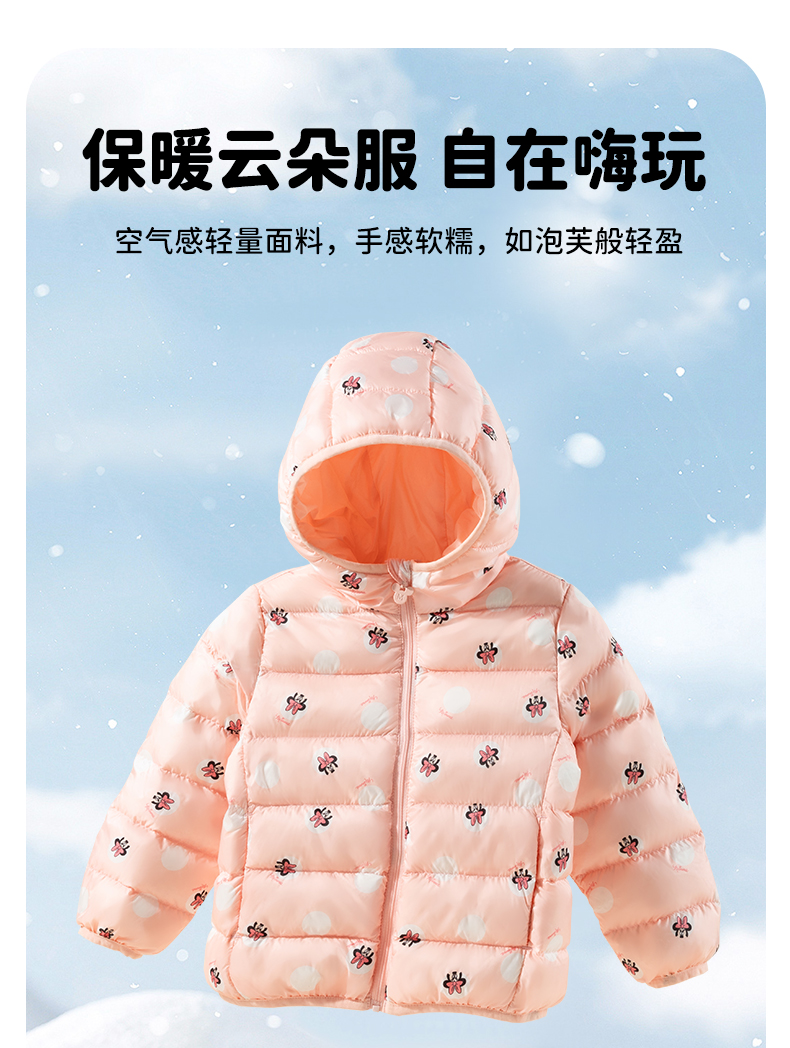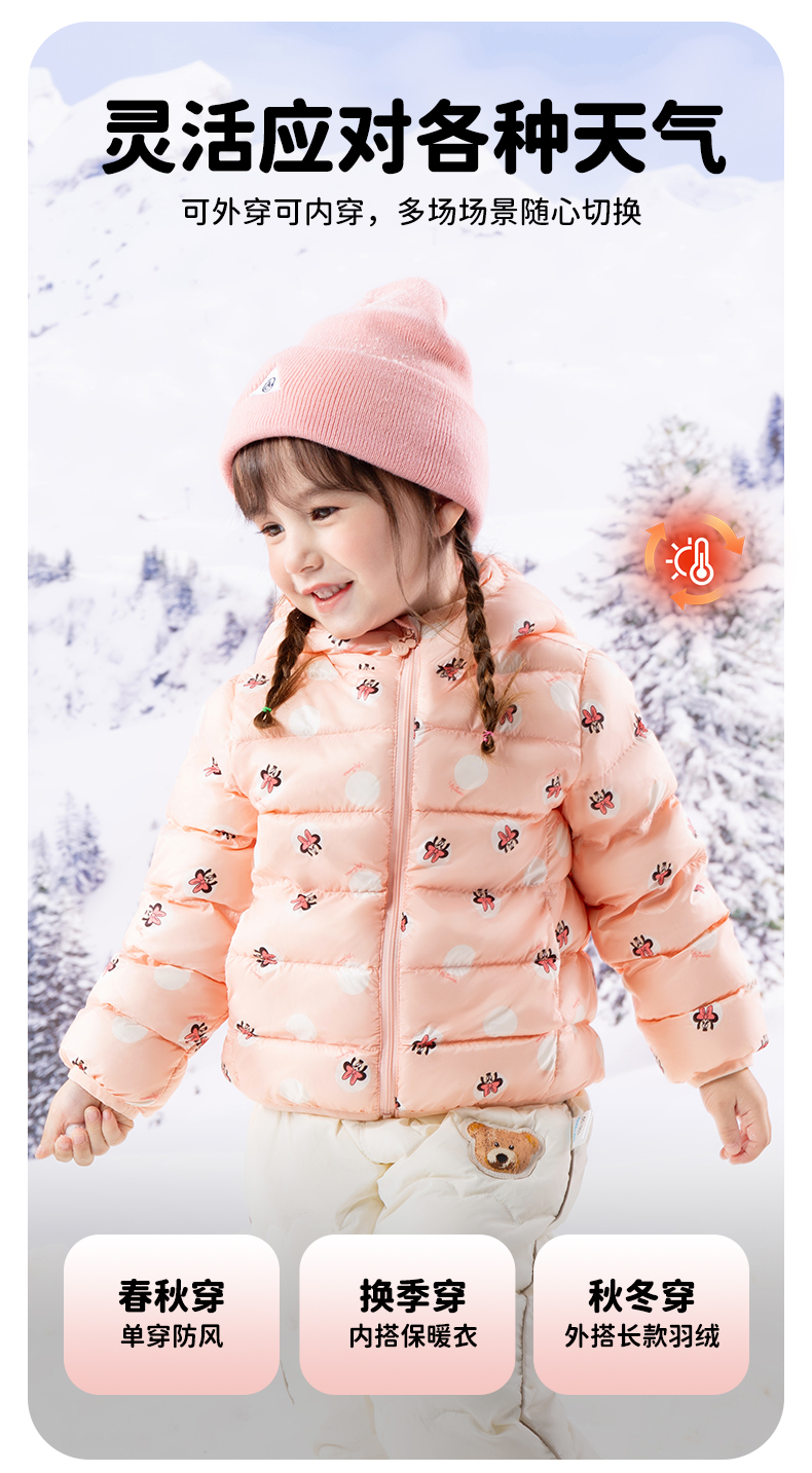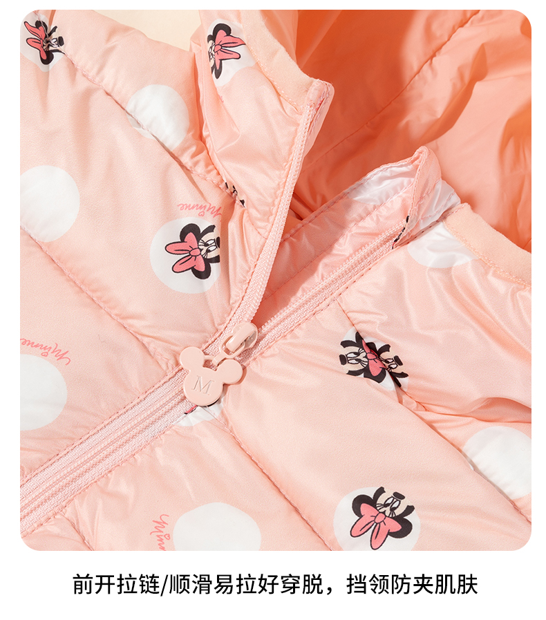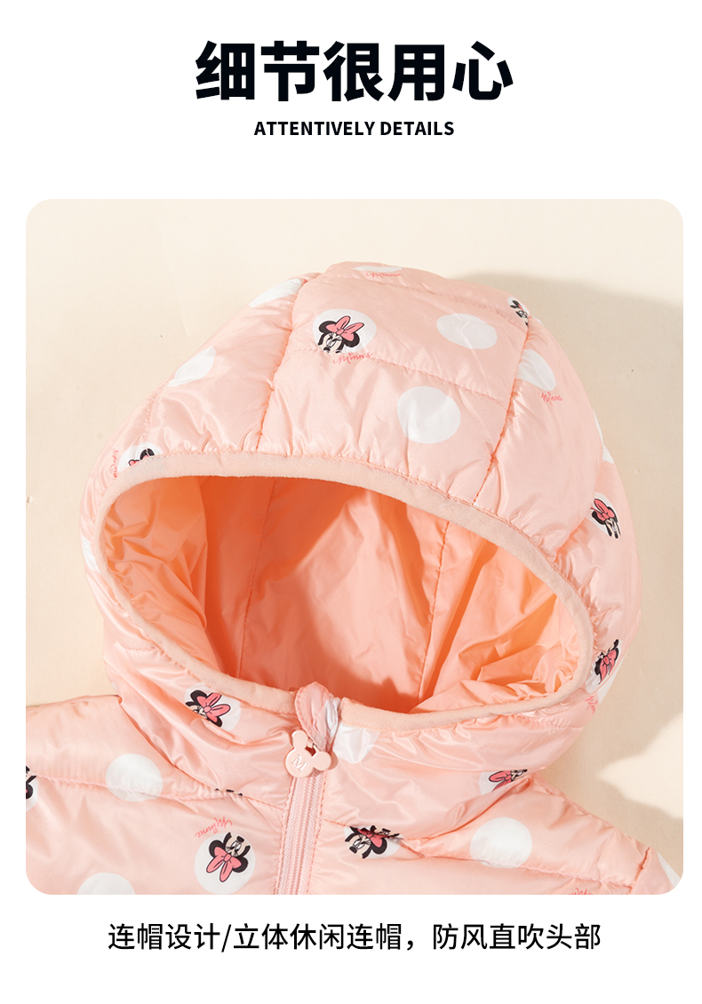 迪士尼【校服神器】24秋冬新款女童连帽防风轻薄羽绒服轻暖可内搭外套ZD4DS023