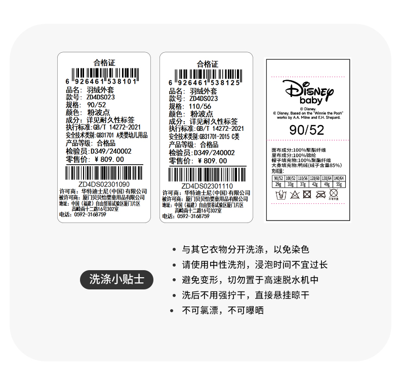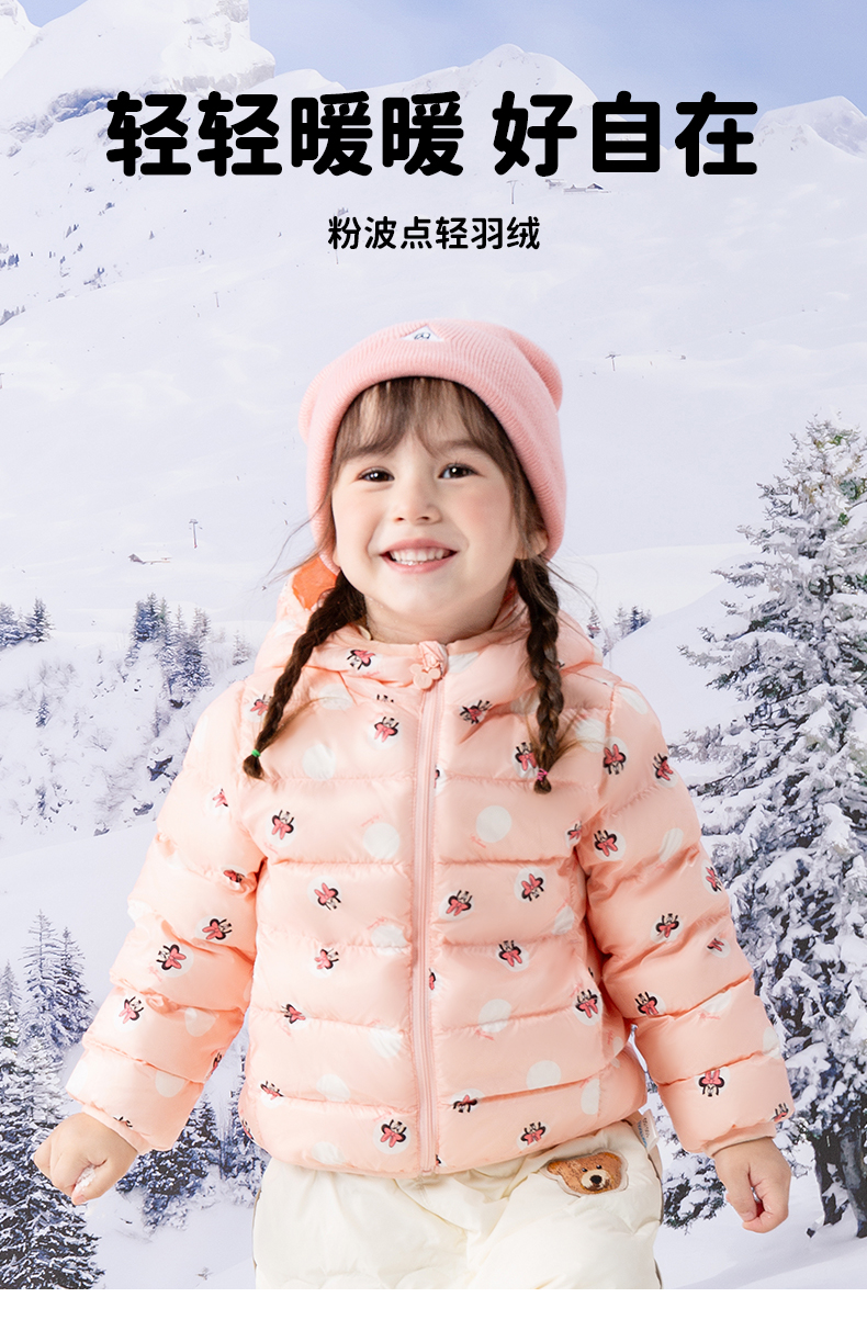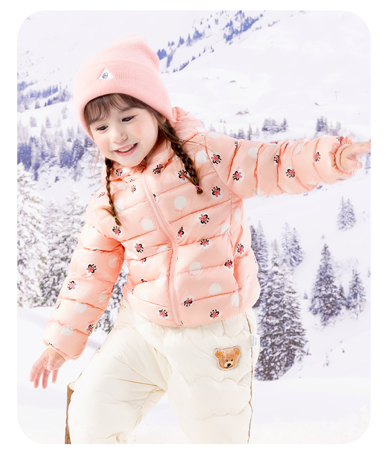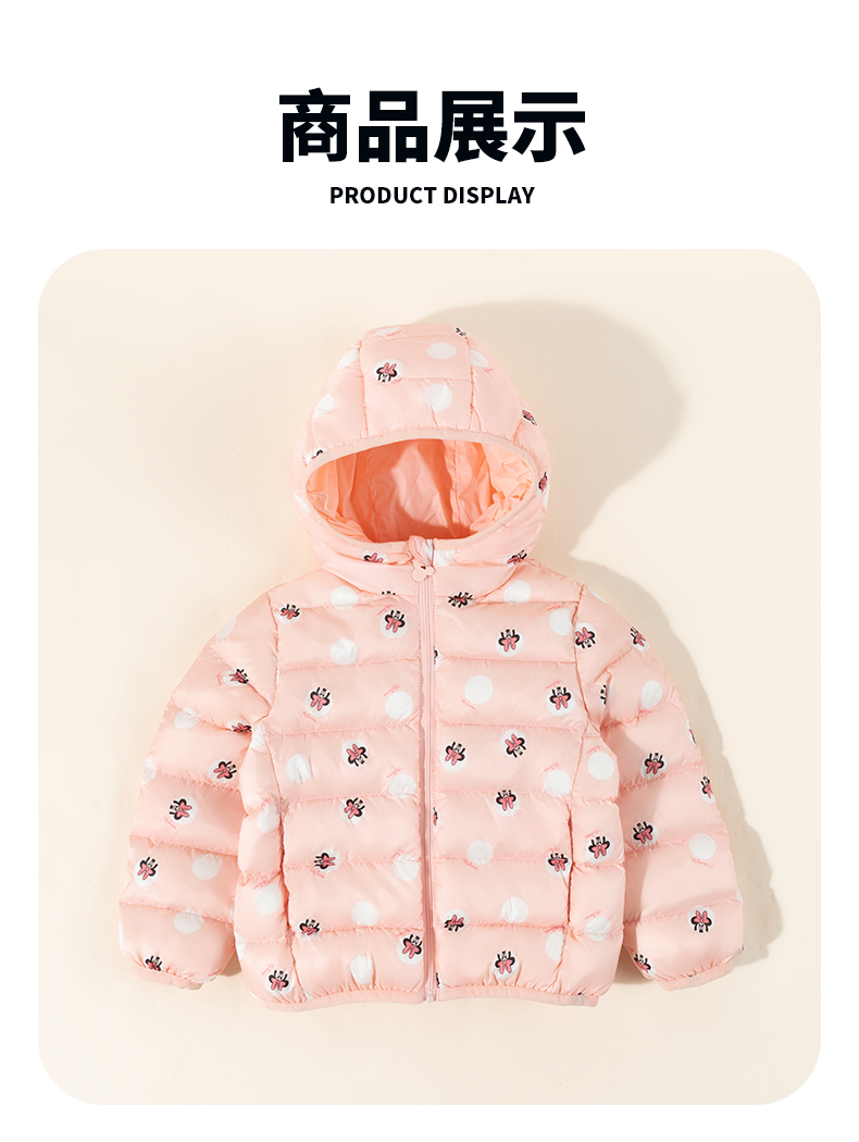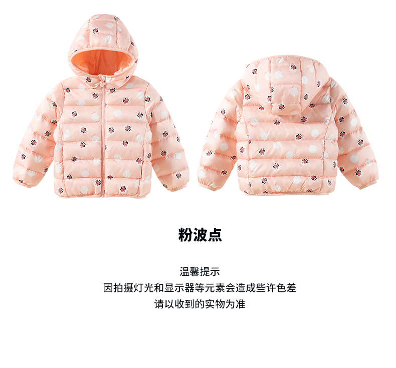 迪士尼【校服神器】24秋冬新款女童连帽防风轻薄羽绒服轻暖可内搭外套ZD4DS023