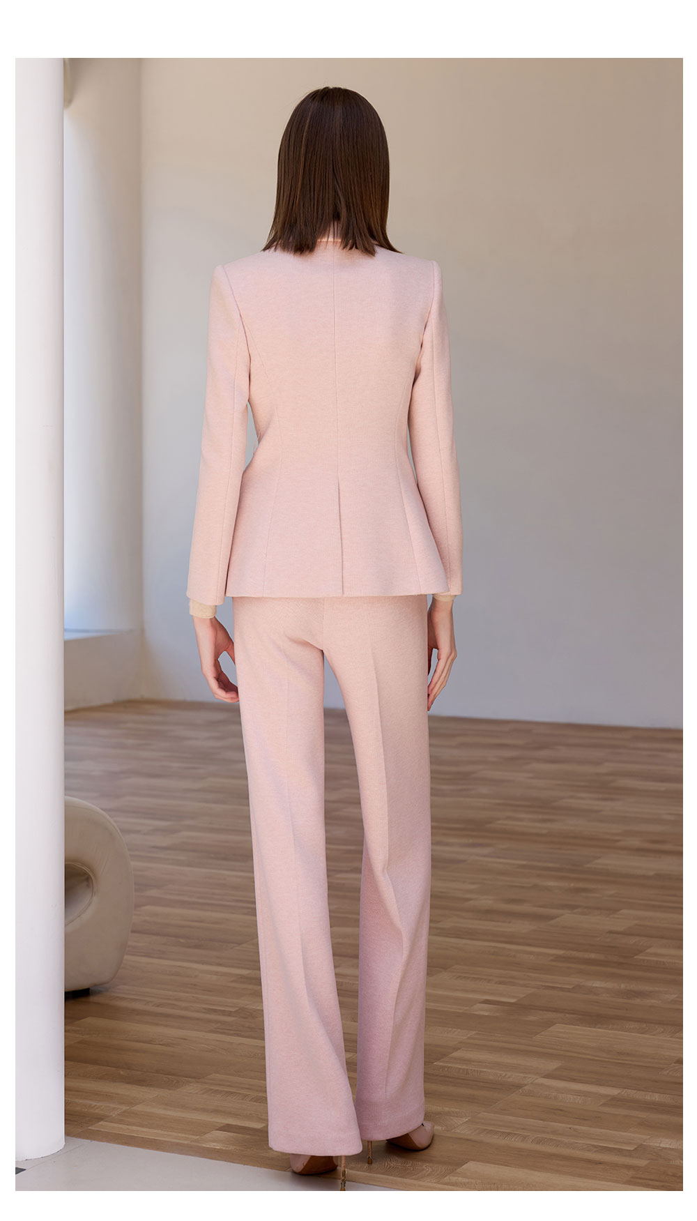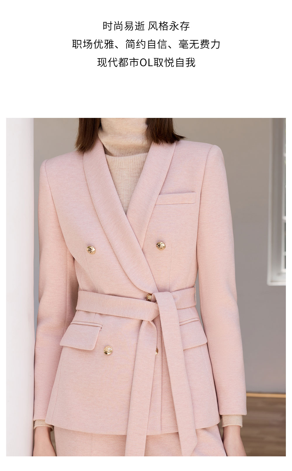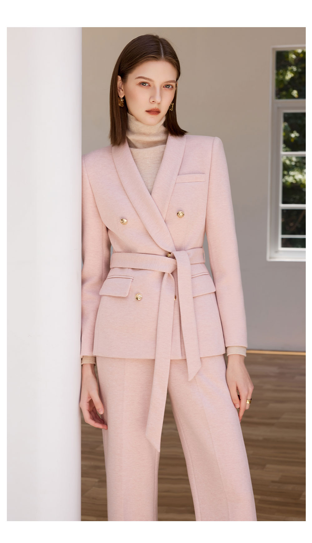 AD粉色西装外套女气质收腰系带羊毛西服正装2025新款呢子阔腿裤