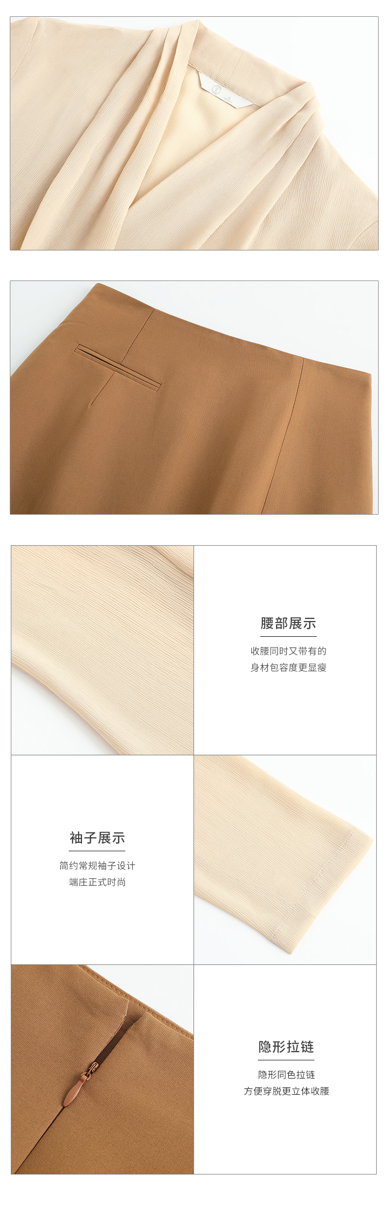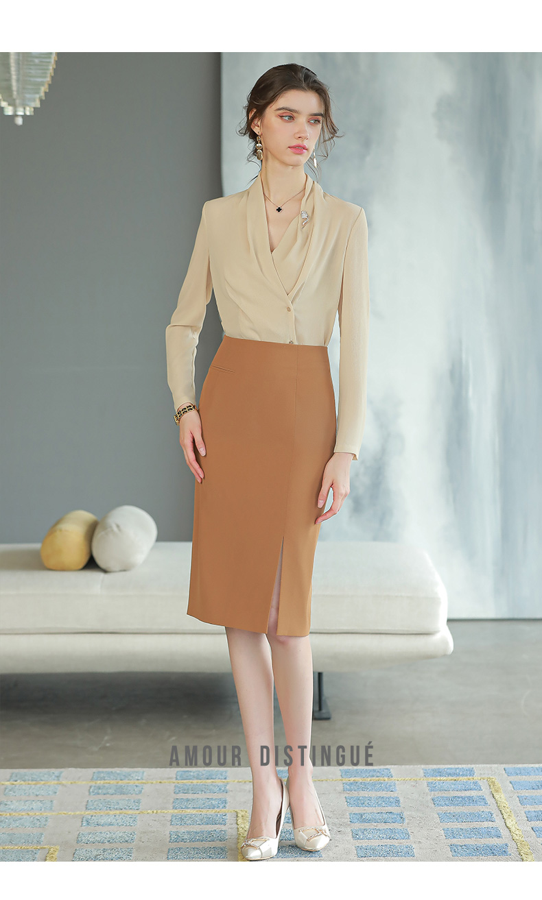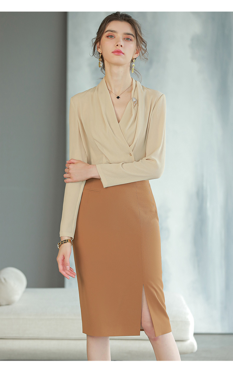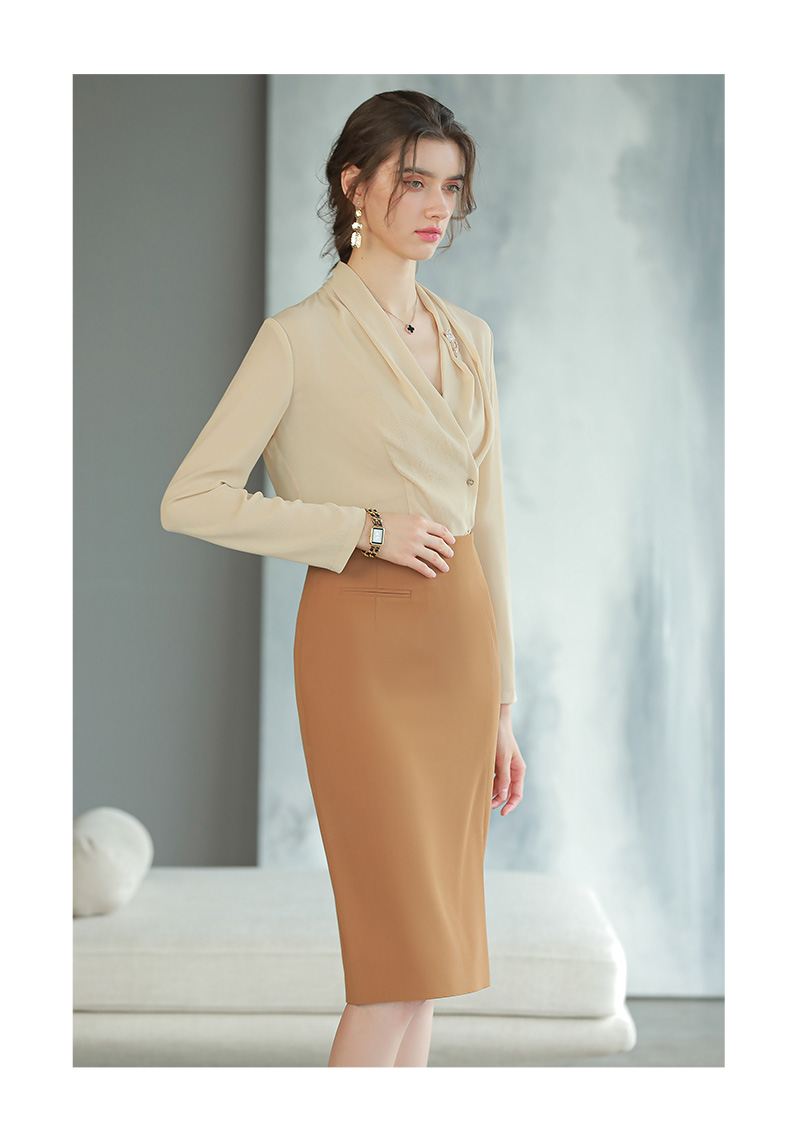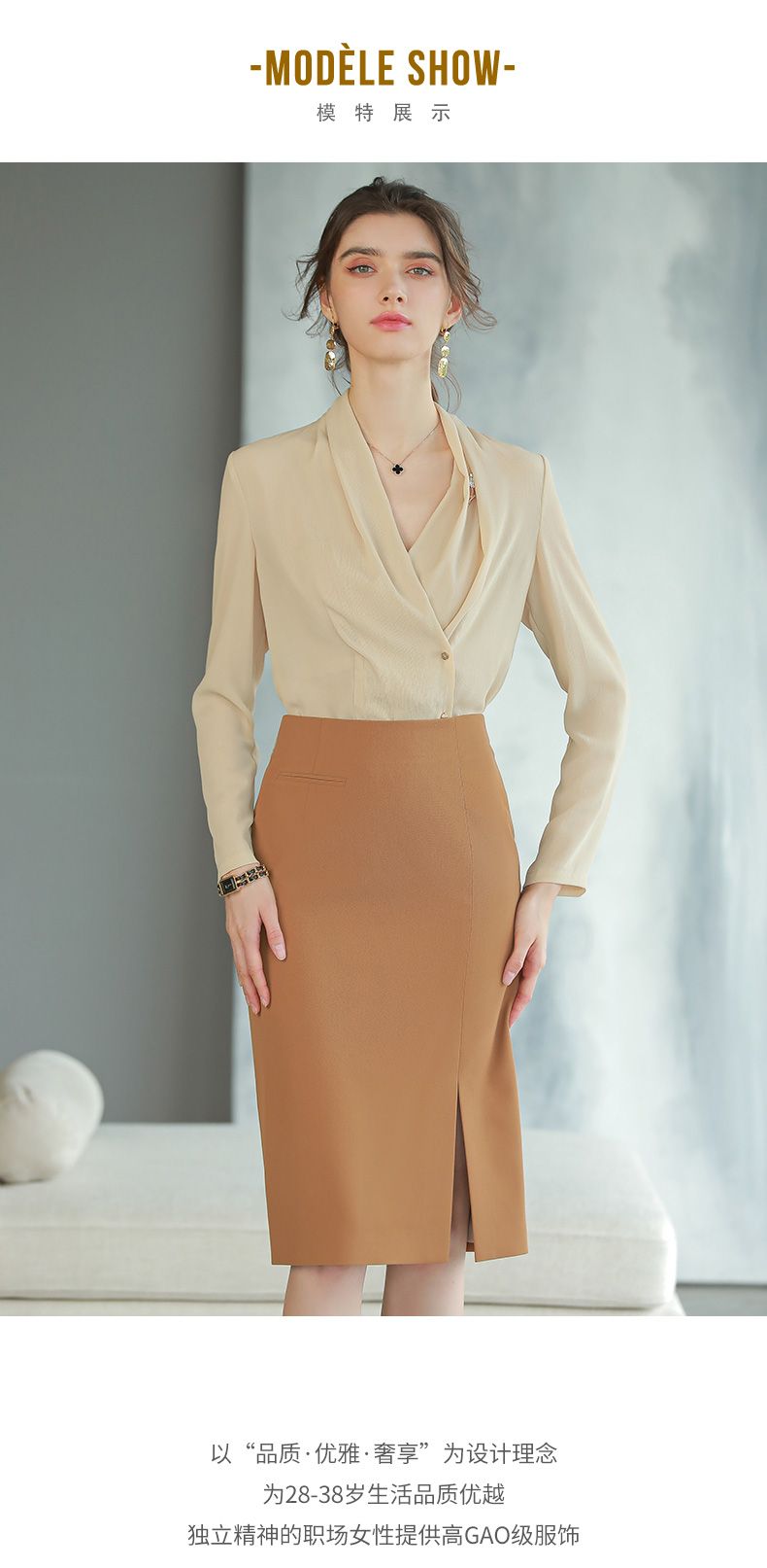 AD法式交襟上衣女杏色洋气小衫通勤职业装气质女神范套装显瘦半裙
