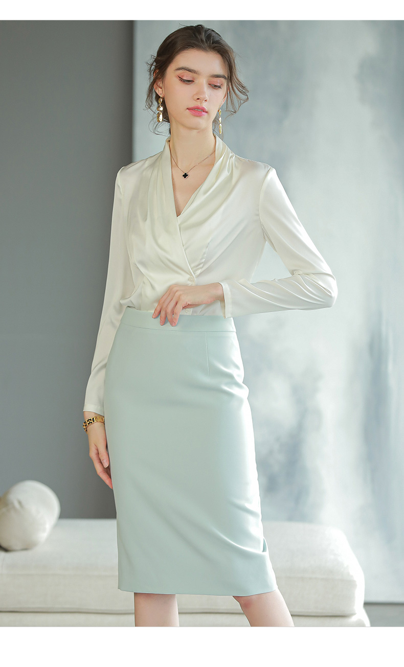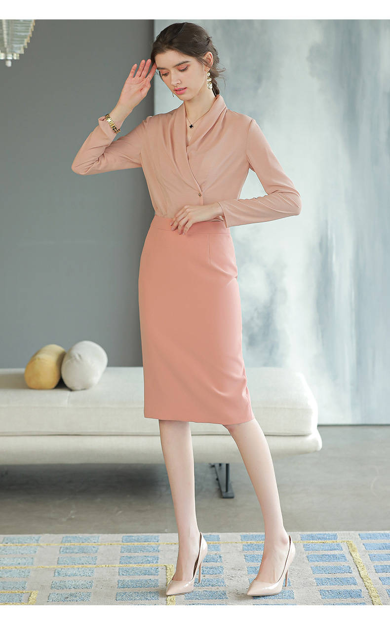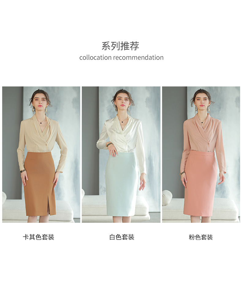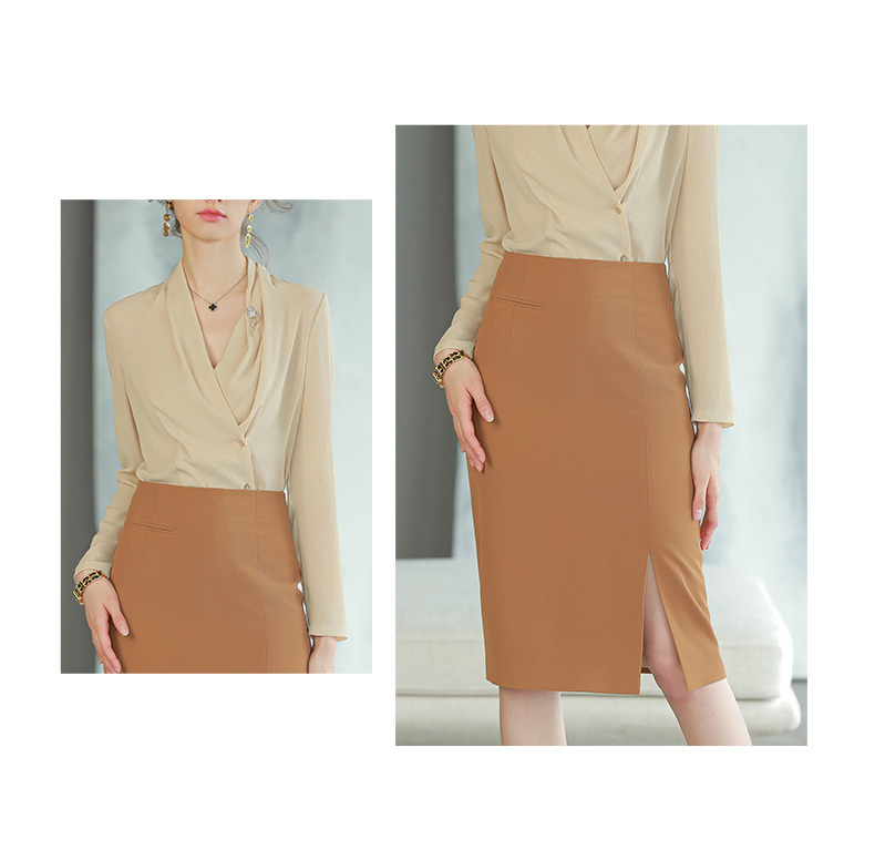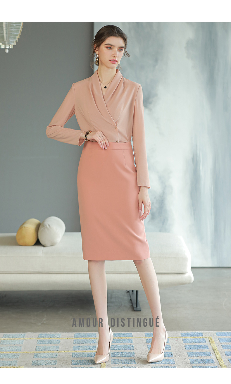 AD法式交襟上衣女杏色洋气小衫通勤职业装气质女神范套装显瘦半裙
