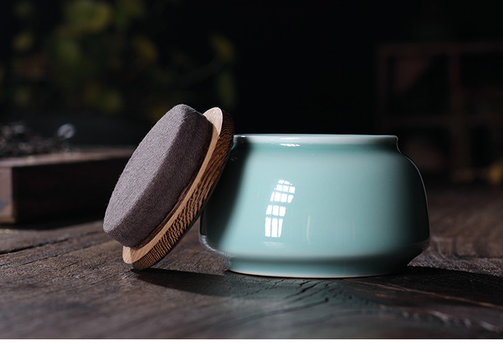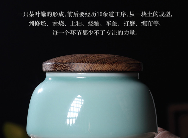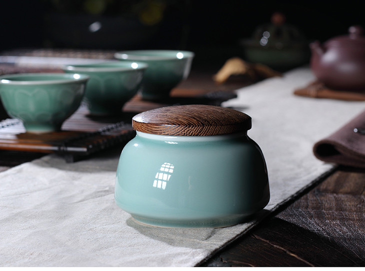 尚唐丨龙泉青瓷 小茶叶罐 青木茶叶罐 陶瓷密封罐 鸡翅木木盖