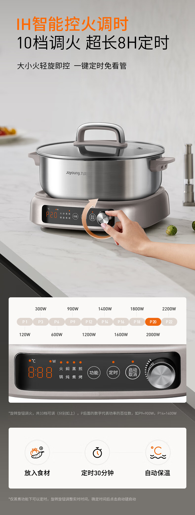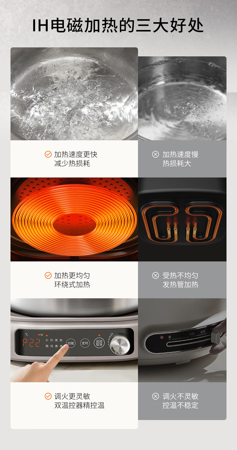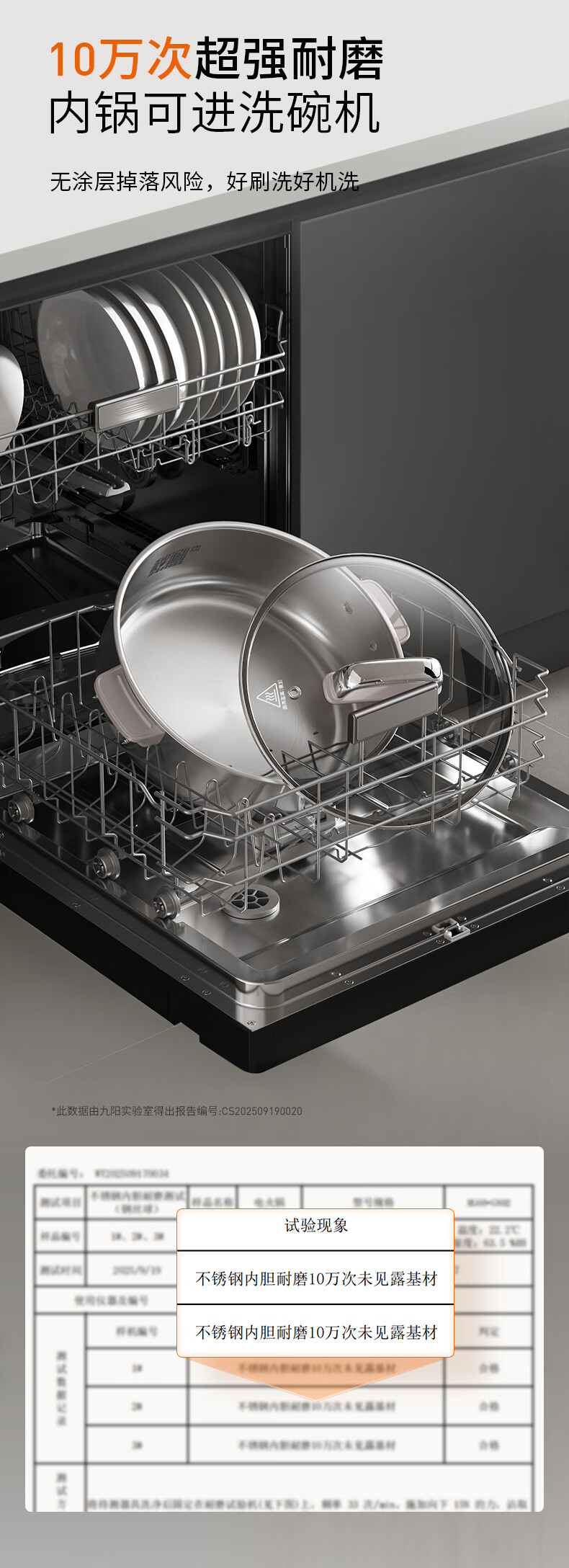九阳电火锅0涂层IH秒涮6L分体式不锈钢可拆洗多功能电煮锅电热锅