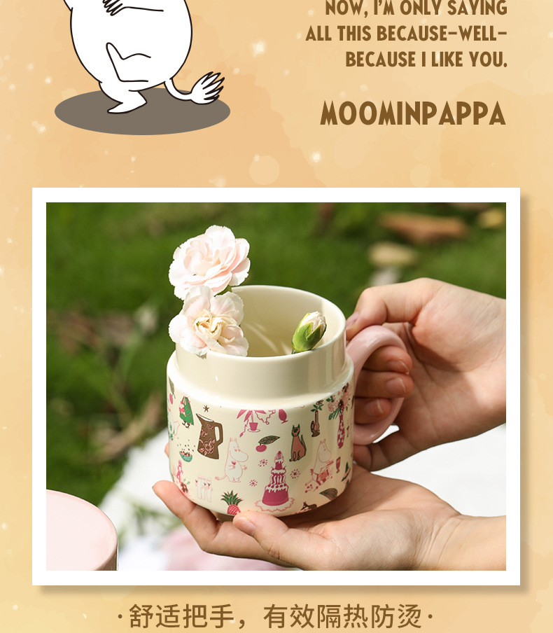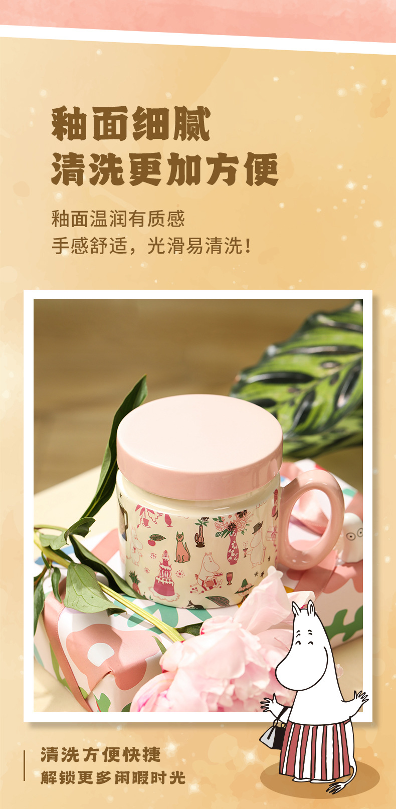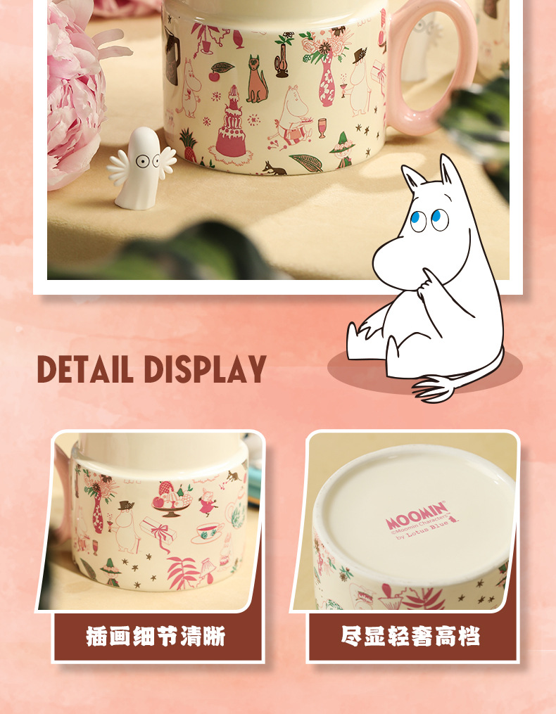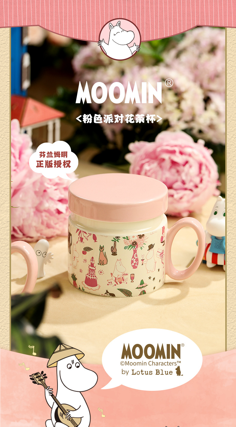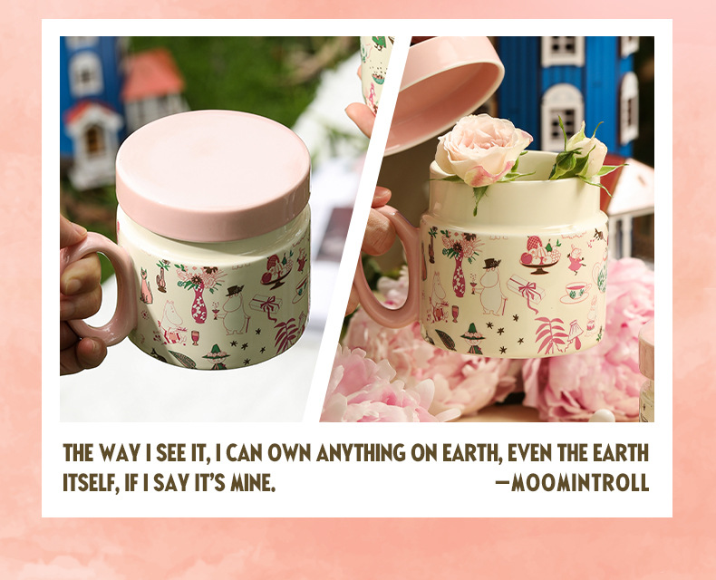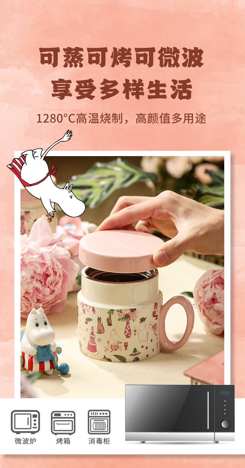 Moomin姆明杯子花茶杯陶瓷带盖马克杯家用粉色喝水杯子女生高颜值
