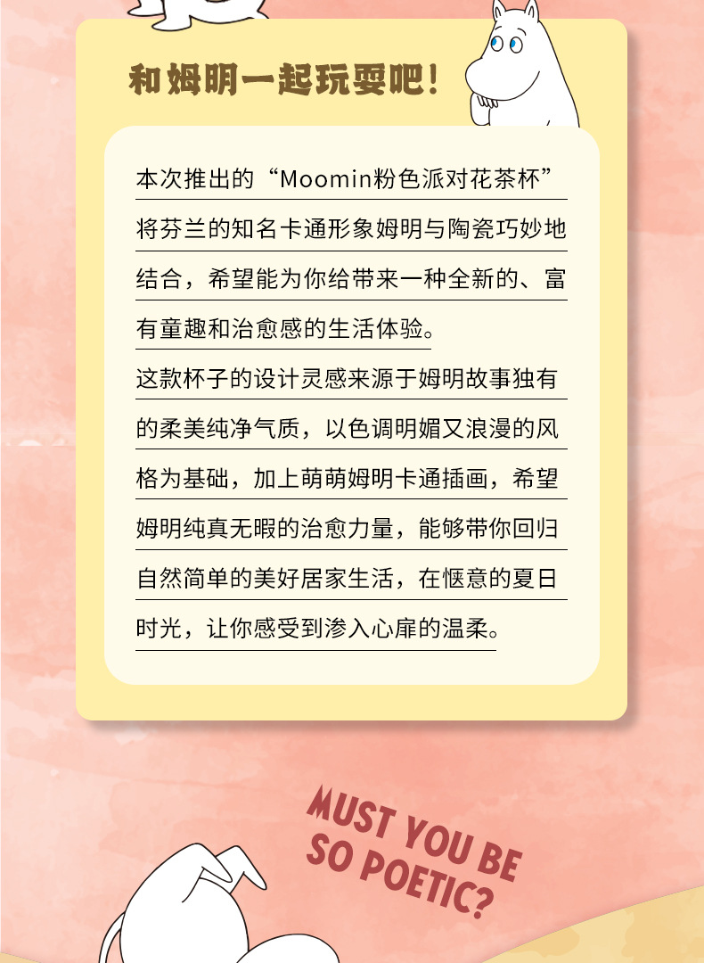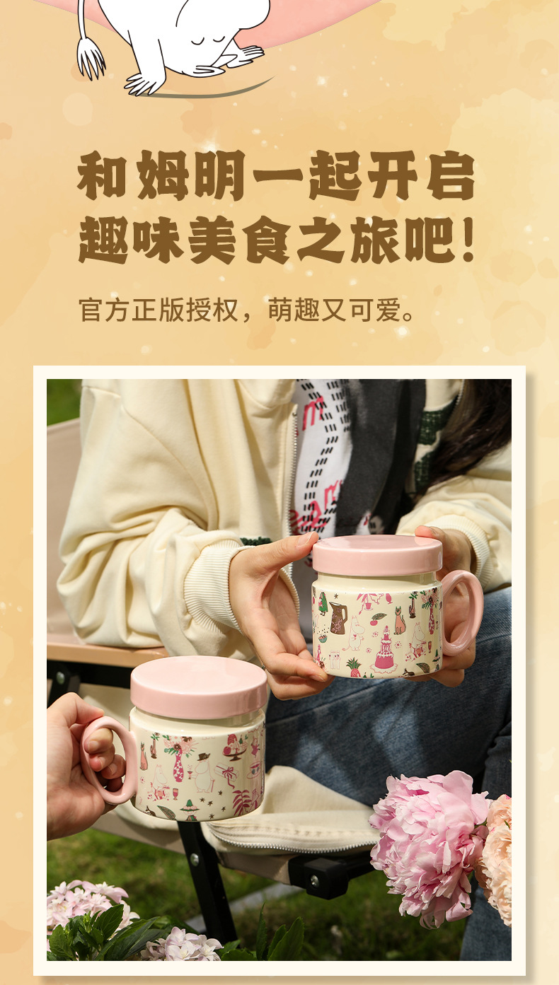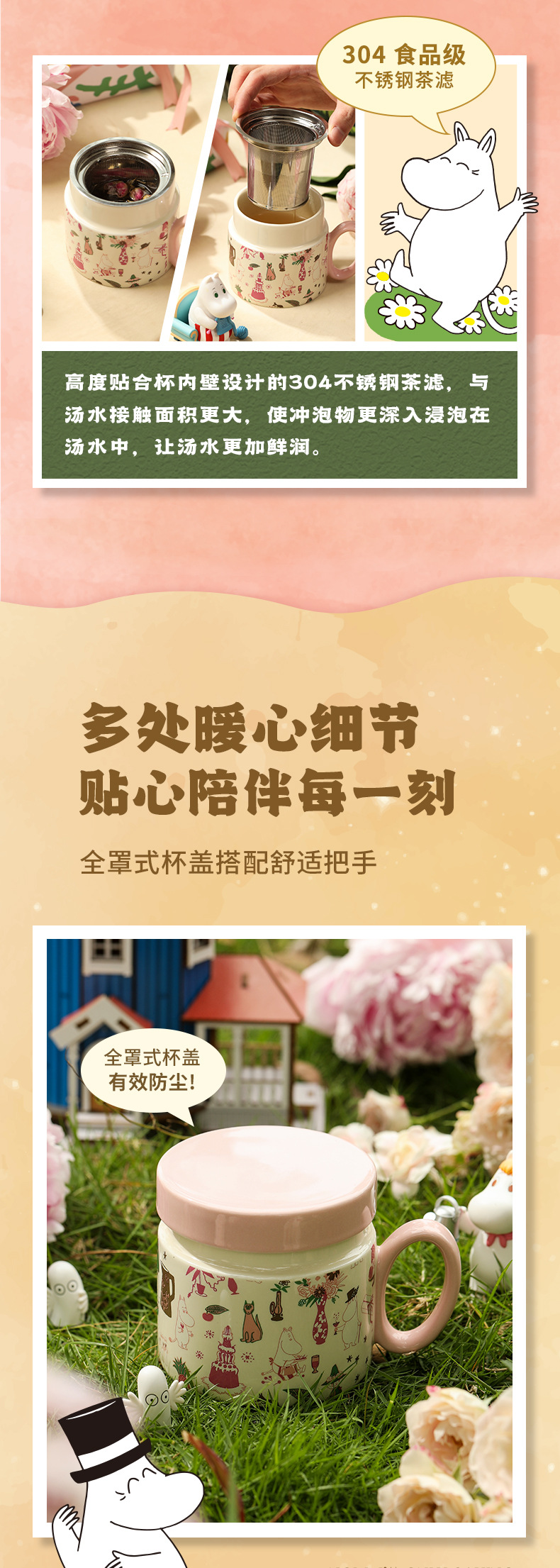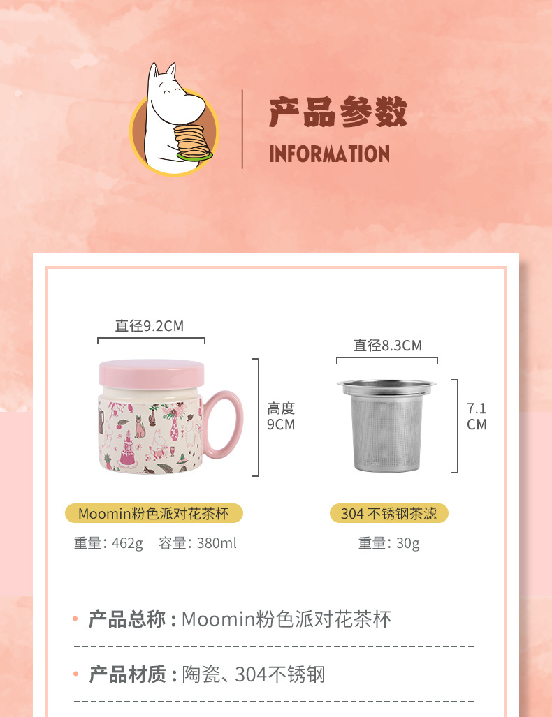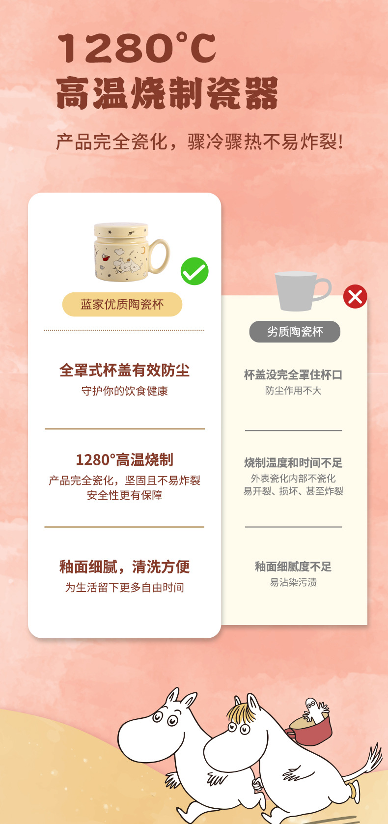 Moomin姆明杯子花茶杯陶瓷带盖马克杯家用粉色喝水杯子女生高颜值