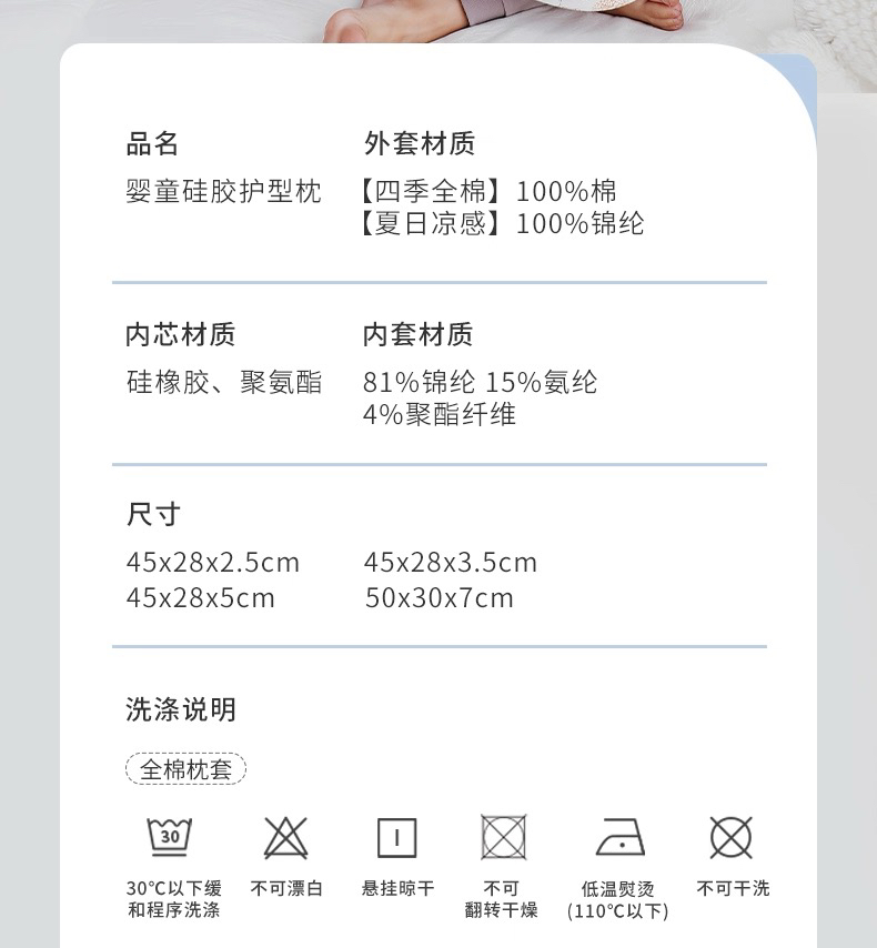 【品牌方直发】Little Tiny宝宝枕头婴儿硅胶枕头芯吸湿透气 四季通用