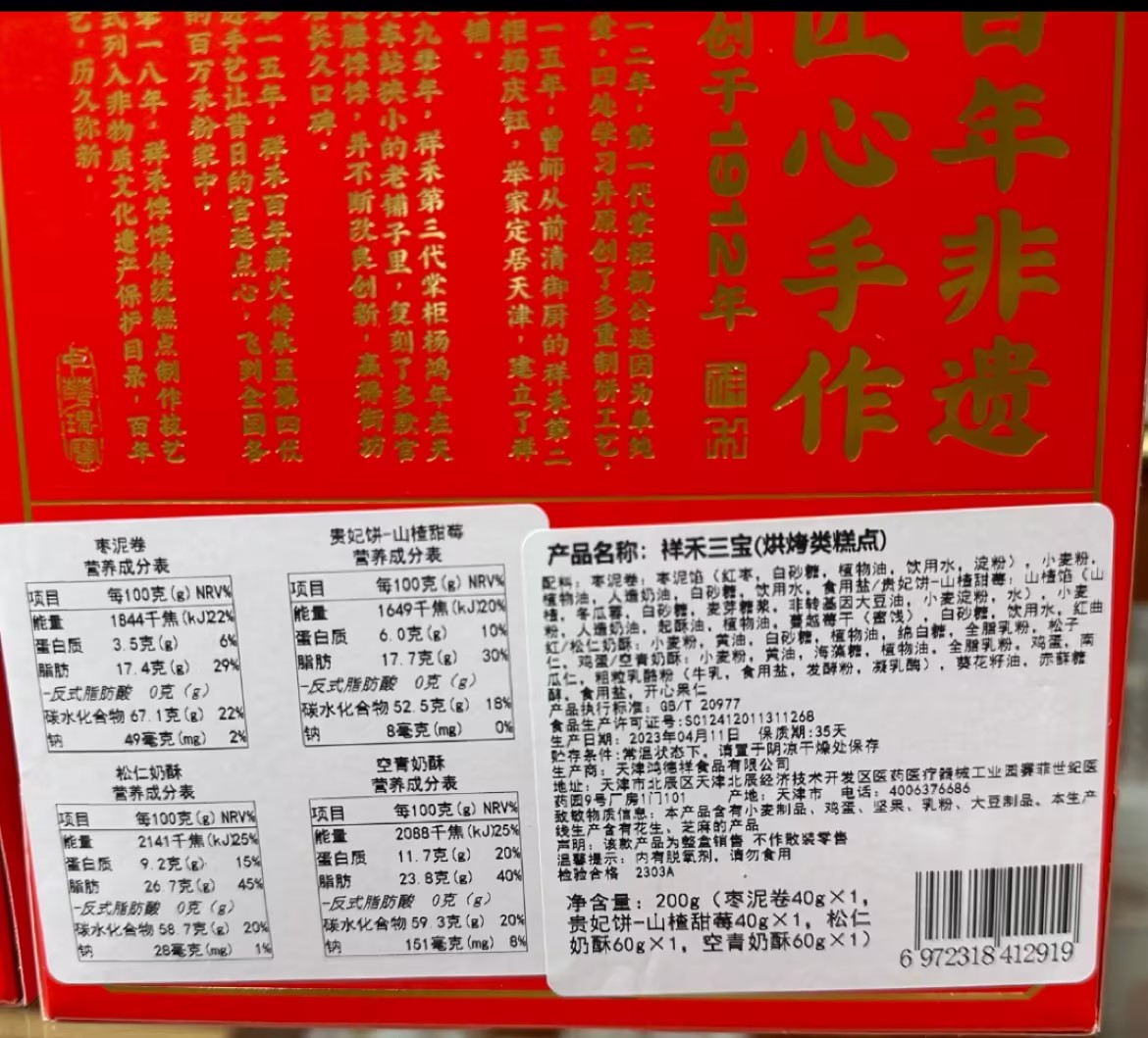 【小三宝】枣泥卷*1,贵妃饼*1,空青奶酥*1袋,松仁奶酥*1袋