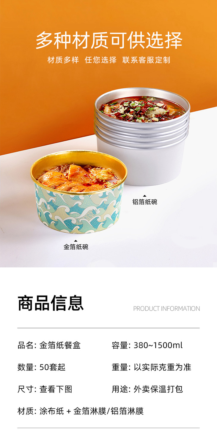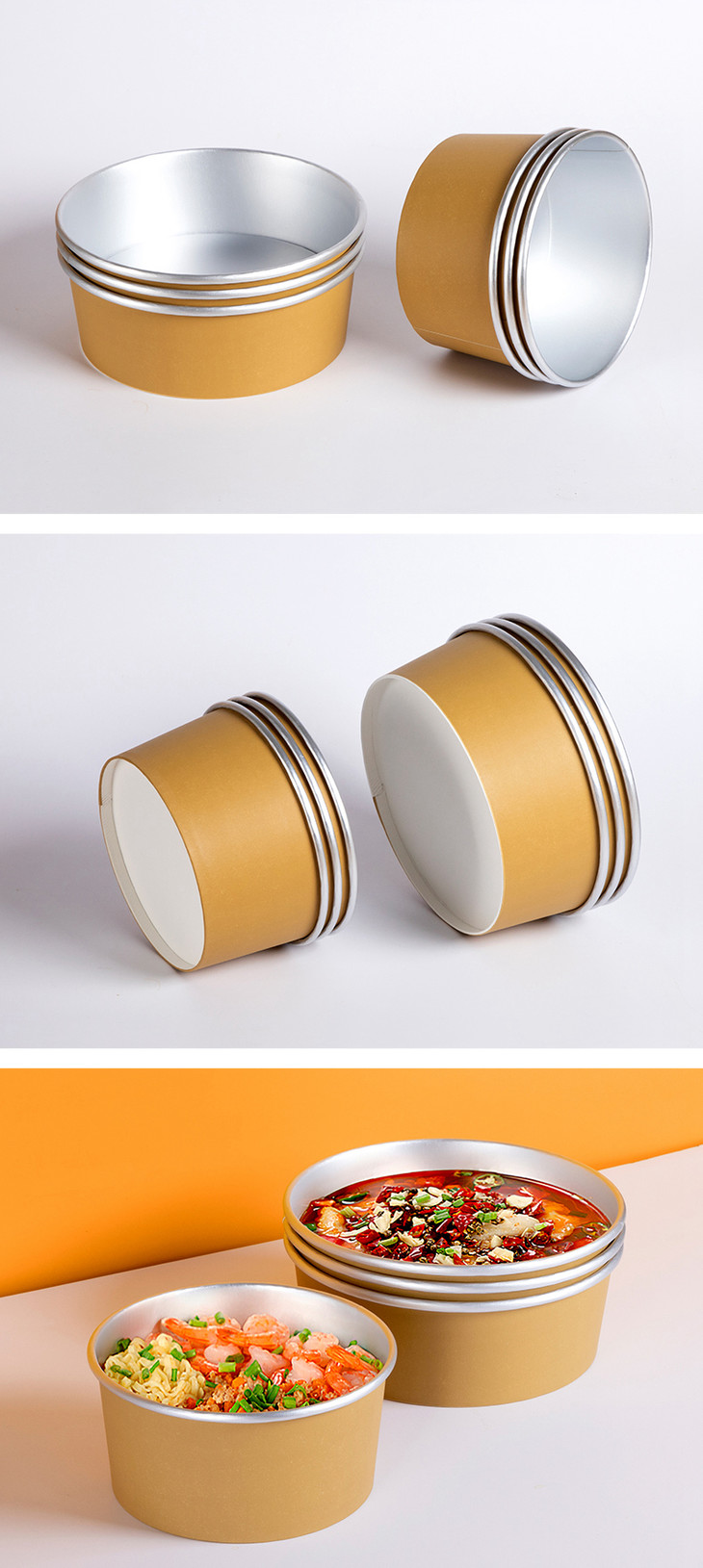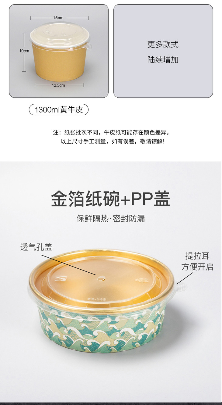 喇叭花一次性牛皮纸汤碗铝箔金箔碗带盖餐盒打包盒圆形碗外卖整箱