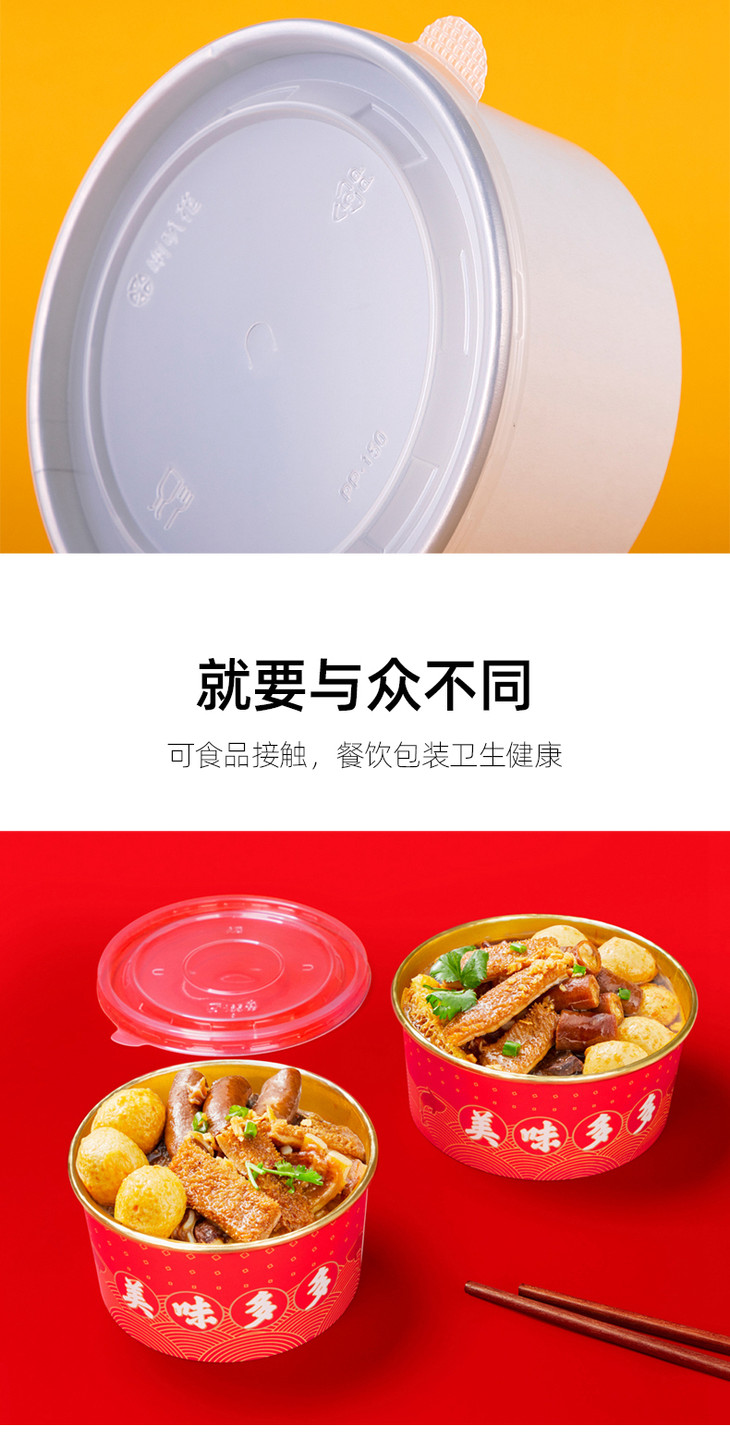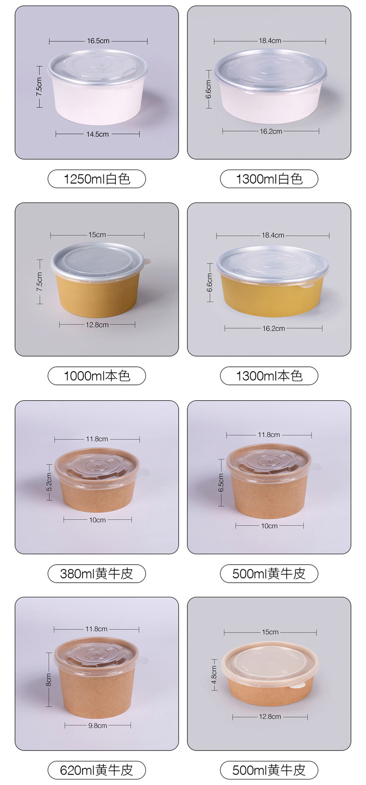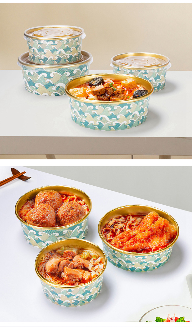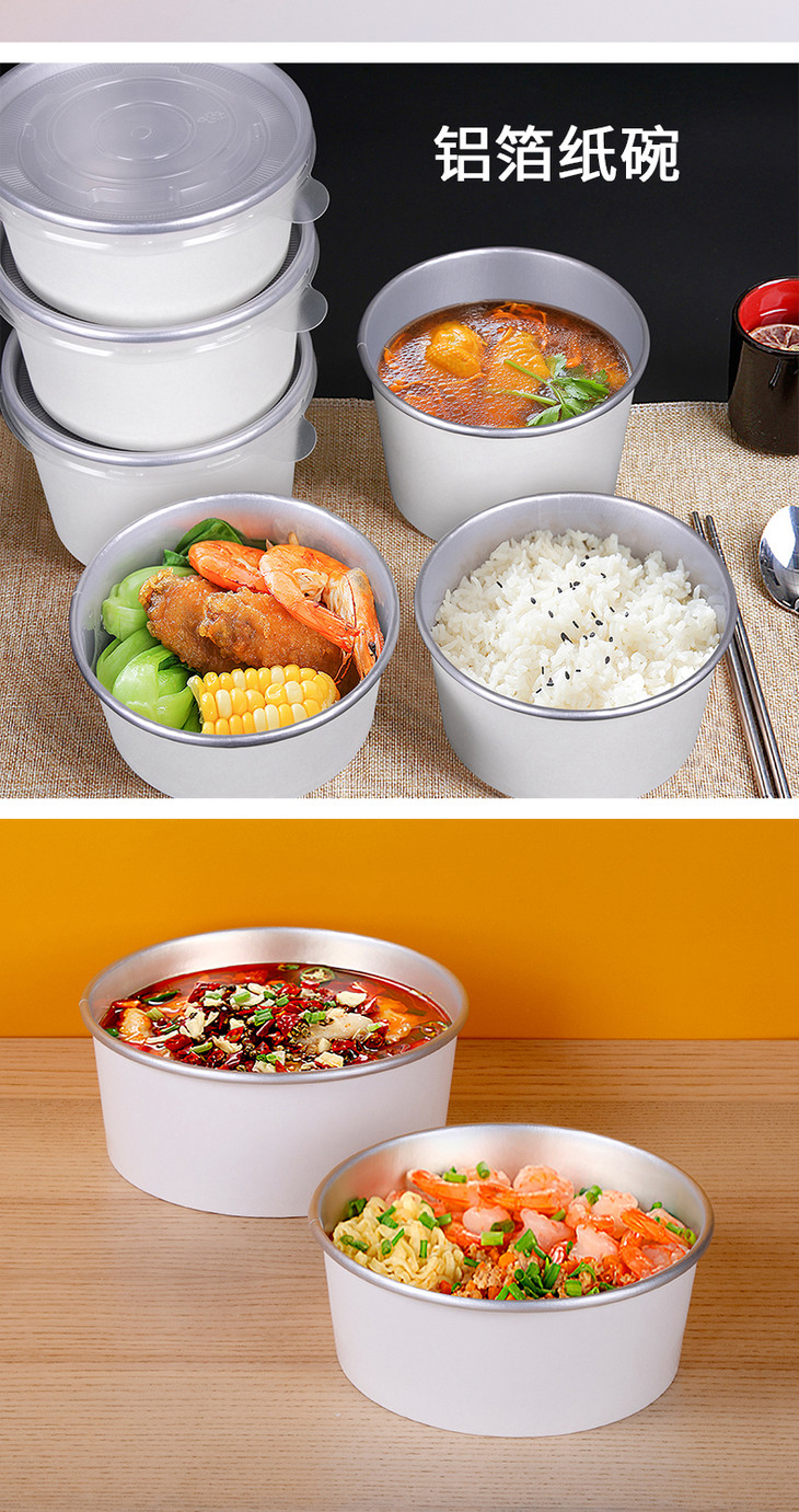 喇叭花一次性牛皮纸汤碗铝箔金箔碗带盖餐盒打包盒圆形碗外卖整箱