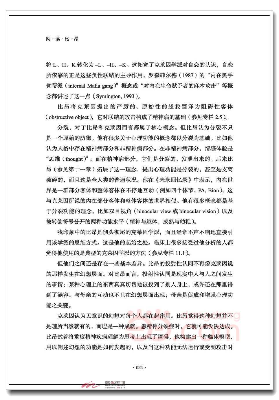 《阅读比昂》一书以独特的方式将比昂这位伟大的精神分析创新者和实践者展现给读者。书中除了运用比昂的文集与书稿介绍了他的生平、思想、研究和临床工作;更将比昂放置于所经历的历史背景和脉络中,运用专栏的方式,透过与其他学者、同行、家人、接触者的交融、碰撞,生动地展示了丰富多样的比昂;让人体悟到比昂在自我的经验中、在与他人共处中独有的转化。这或许也是一种比昂的双目视角!感谢译者、审校者使读者可以流畅地阅读比昂深奥的思想与灵魂!