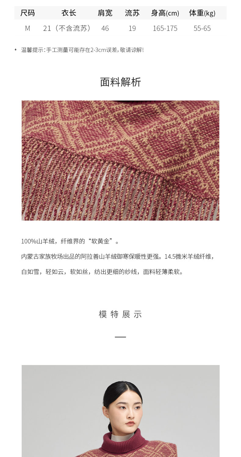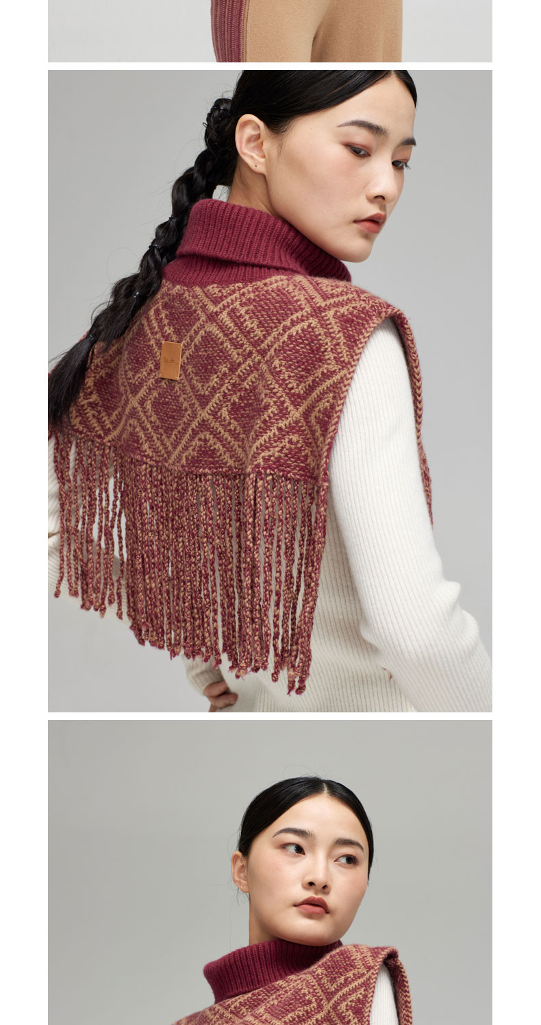 青海羊绒针织提花流苏斗篷式披肩SJF96W327N