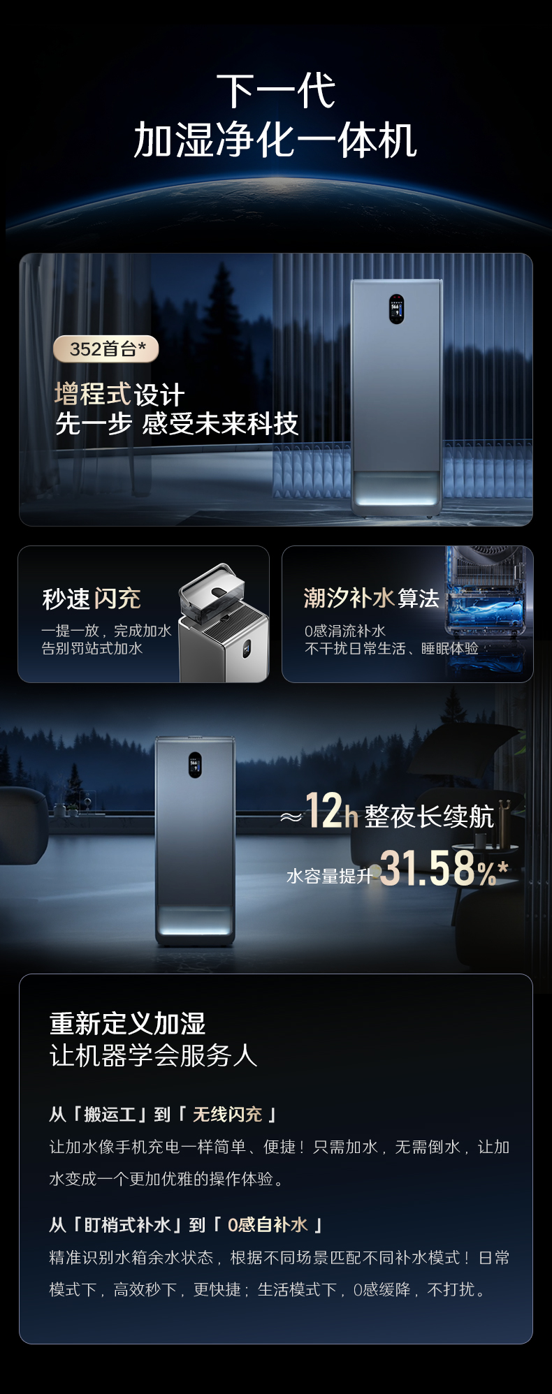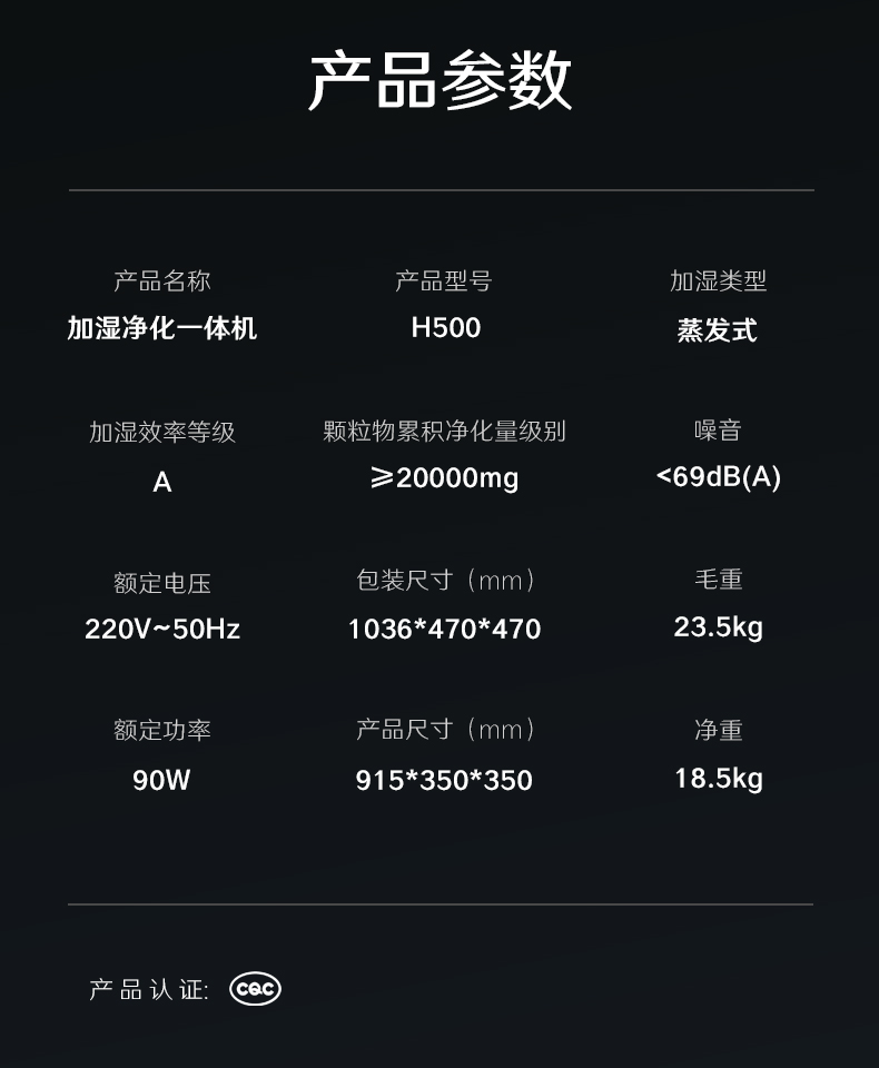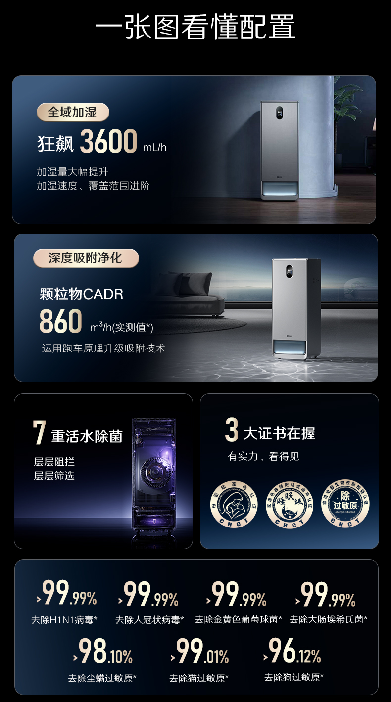 352H500无雾加湿器空气净化器加湿净化一体机家用客厅卧室大面积加湿除甲醛