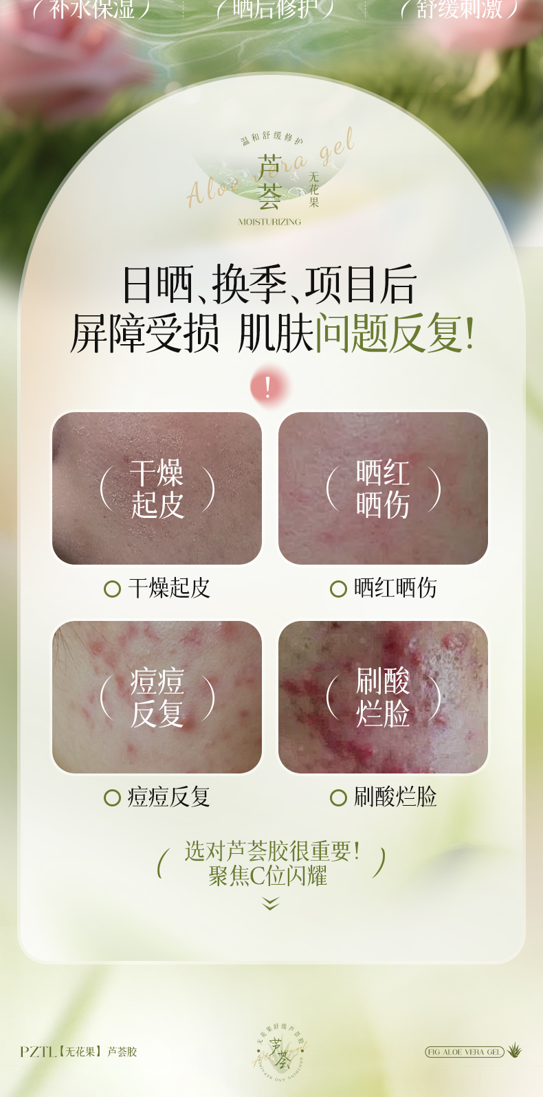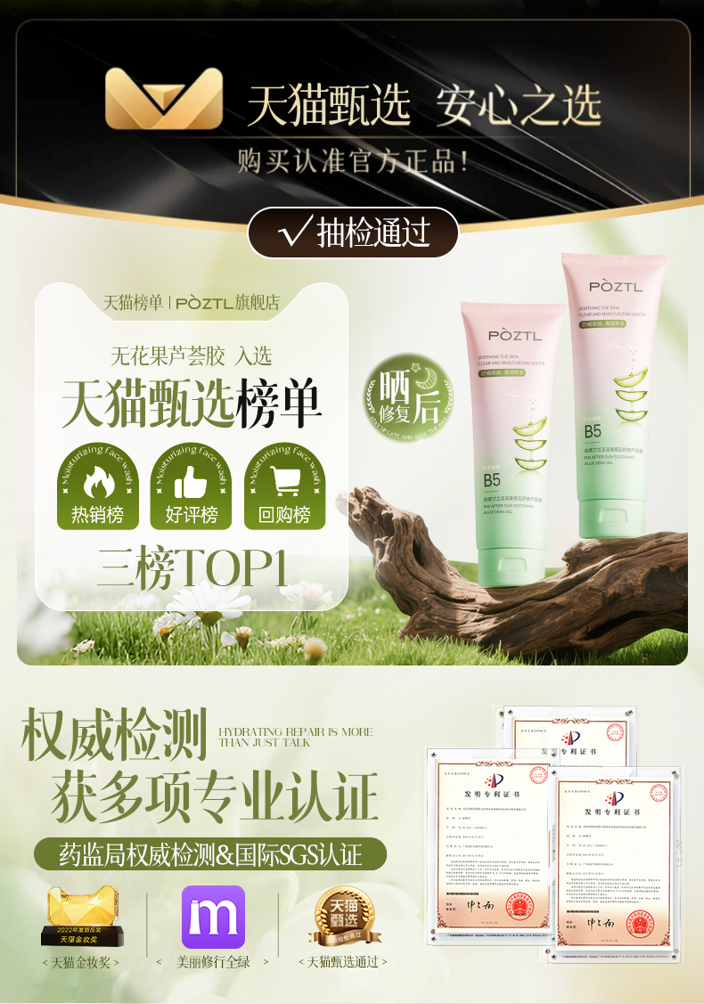 【POZTL泊紫汀兰 大容量补水舒缓芦荟胶】255G一支,超大容量!舒缓修护,保湿嫩肤,晒后修复!