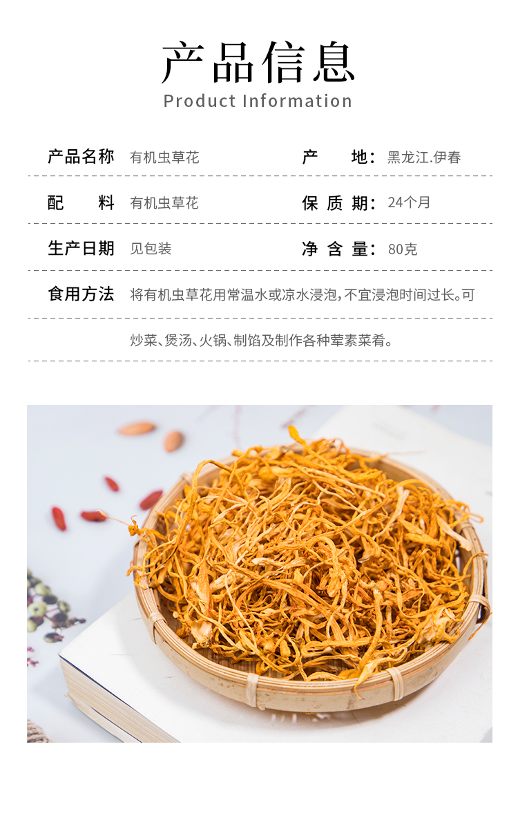 【有机虫草花•黑龙江】菌香浓郁 煲汤好滋味 靓食材厨房必备 吃法多样