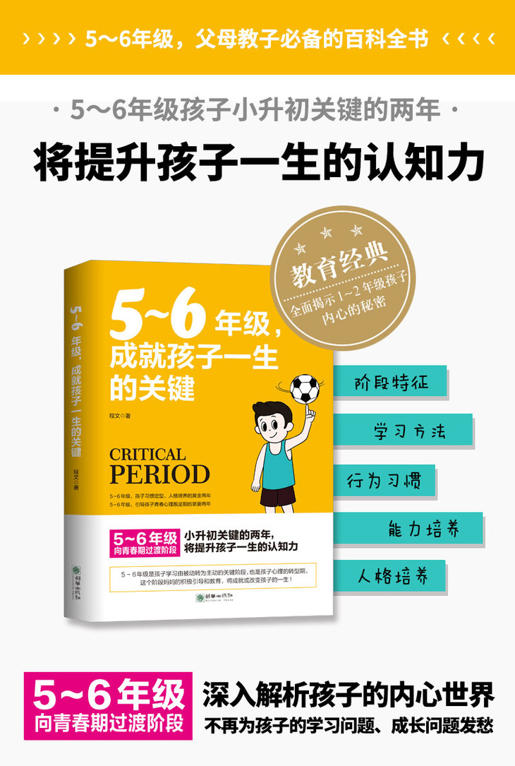 与此同时,5~6年级孩子心理活动的目的性也逐渐增强,他们细心地观察这个世界,留意周围的一举一动,并进行着深刻的思考。不过,由于他们还没有足够成熟,因此会表现得敏感、怀疑,更会困惑、失落以及烦躁不安,他们想要独立,开始有了自己的秘密。