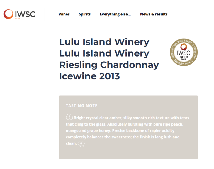 Lulu lsland WineryRiesling Chardonnay Icewine 2013