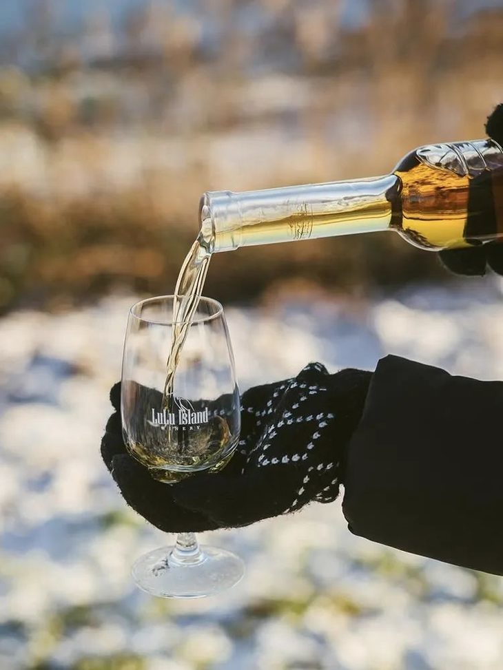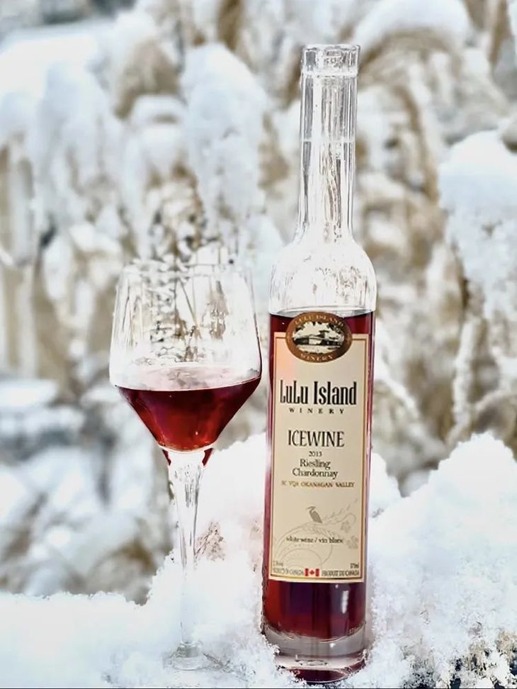 Lulu Island的冰酒以奥卡纳加河谷(OkanaganValley)的雷司令和霞多丽混酿,工序繁琐复杂。与普通酿酒葡萄秋季采收不同。要制作上乘的冰酒,葡萄在成熟后仍需挂枝数月。直至完全入冬后果实在藤上完全结冰方会采收,通常得等到来年二月前后。