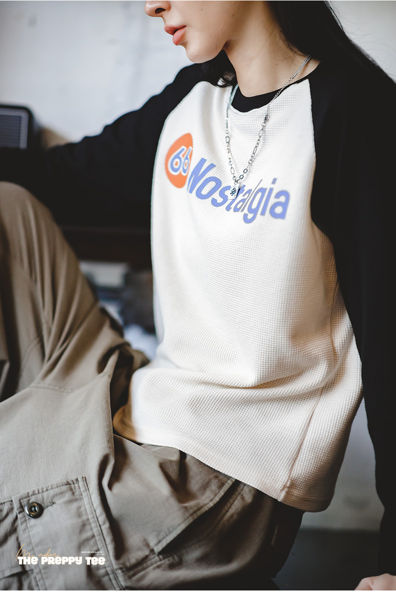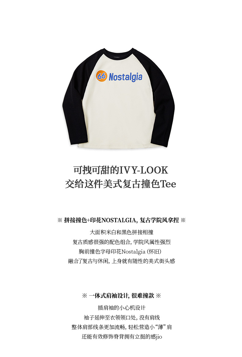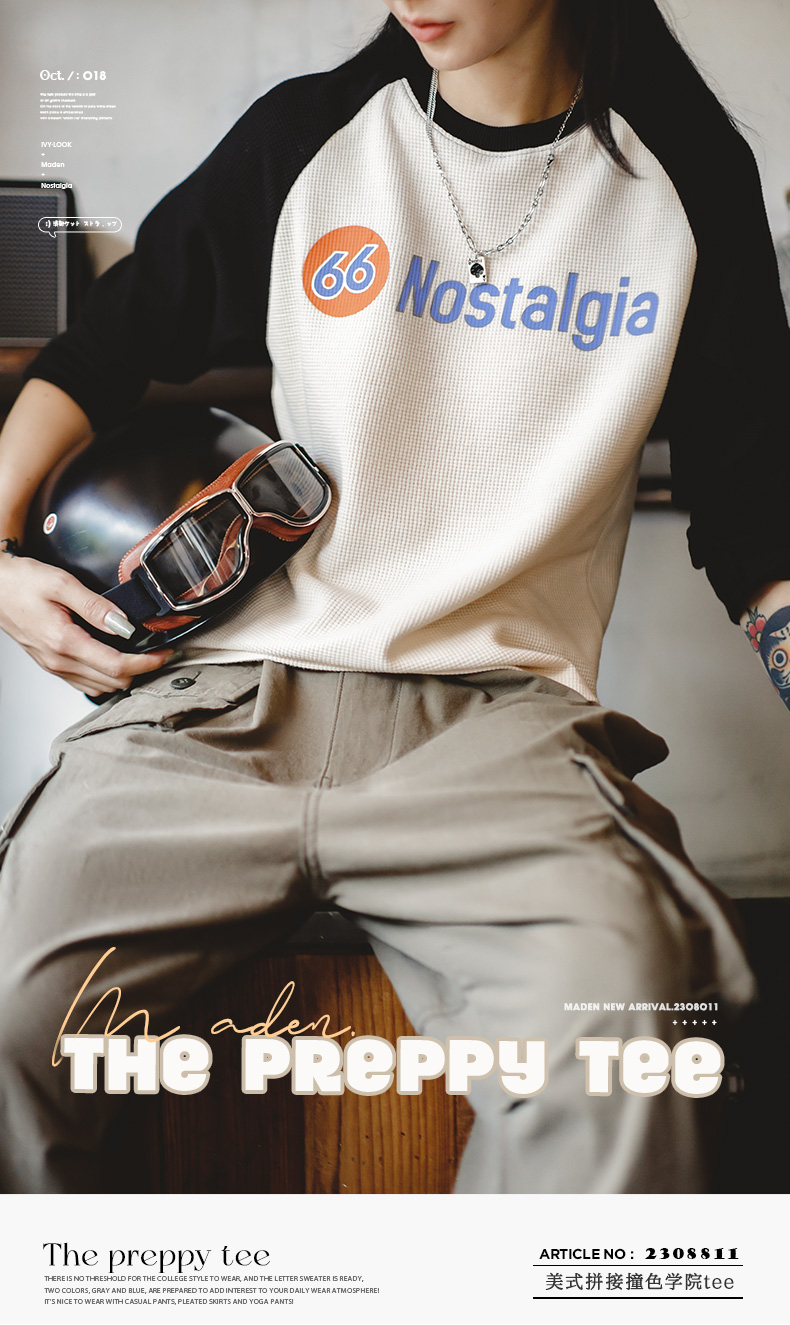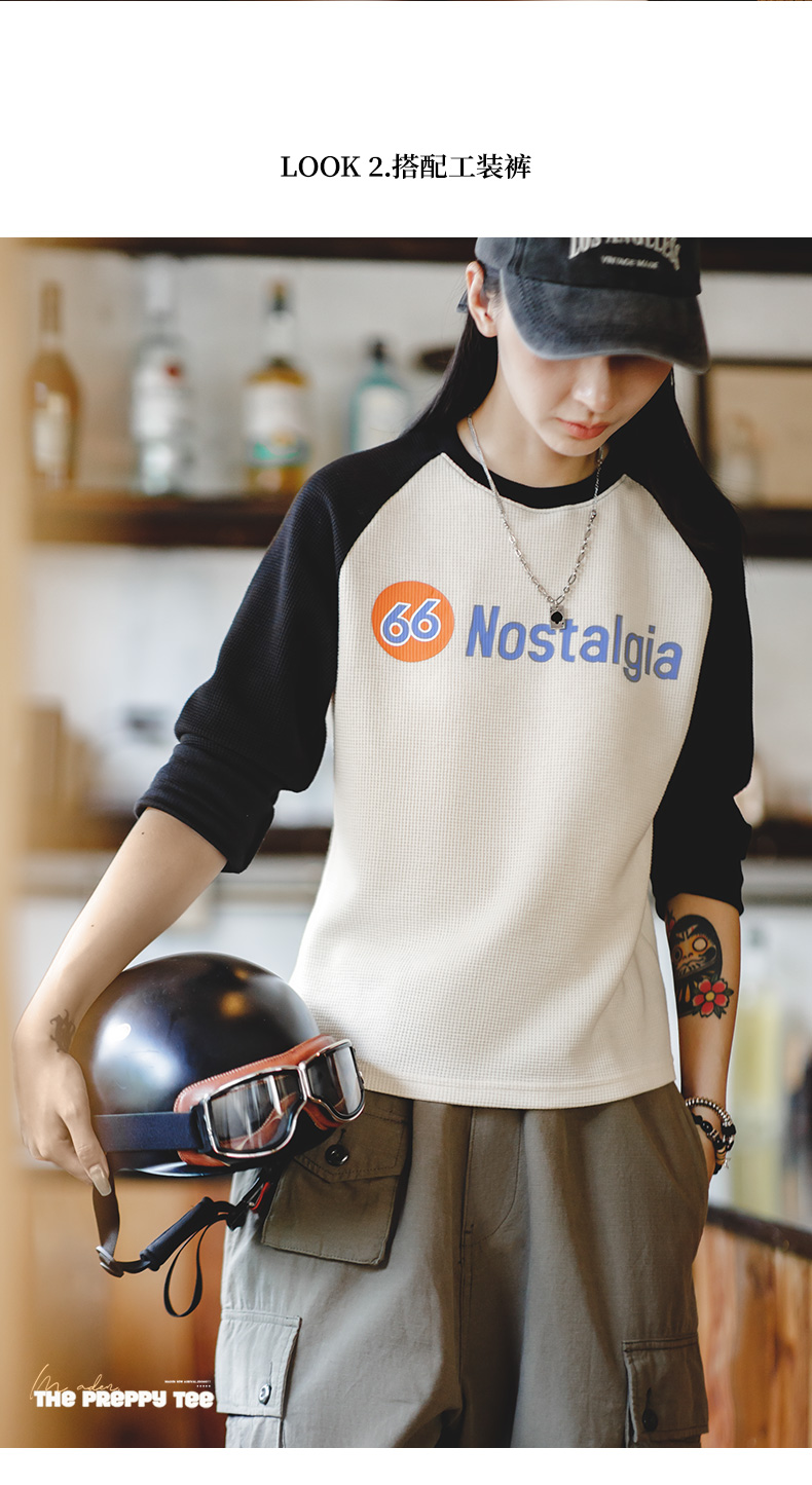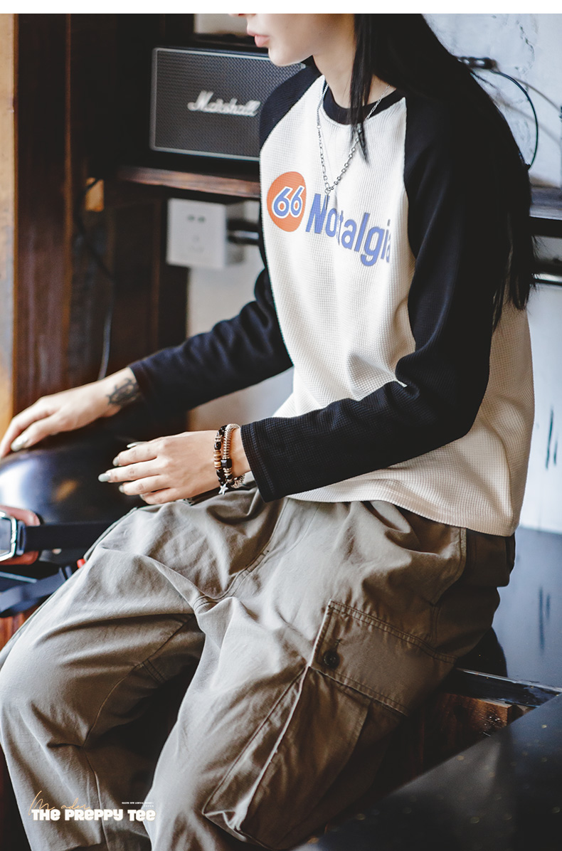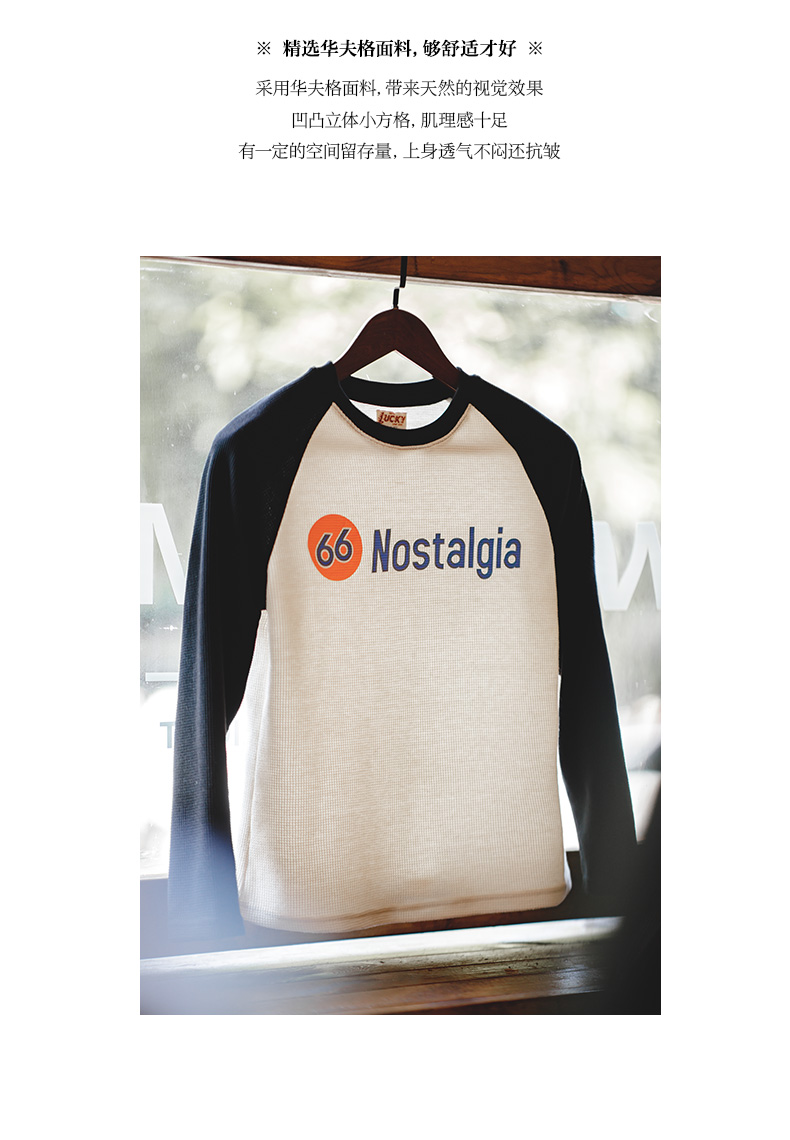 马登美式复古基础款t恤大插肩袖内搭长袖卫衣华夫格打底上衣春女